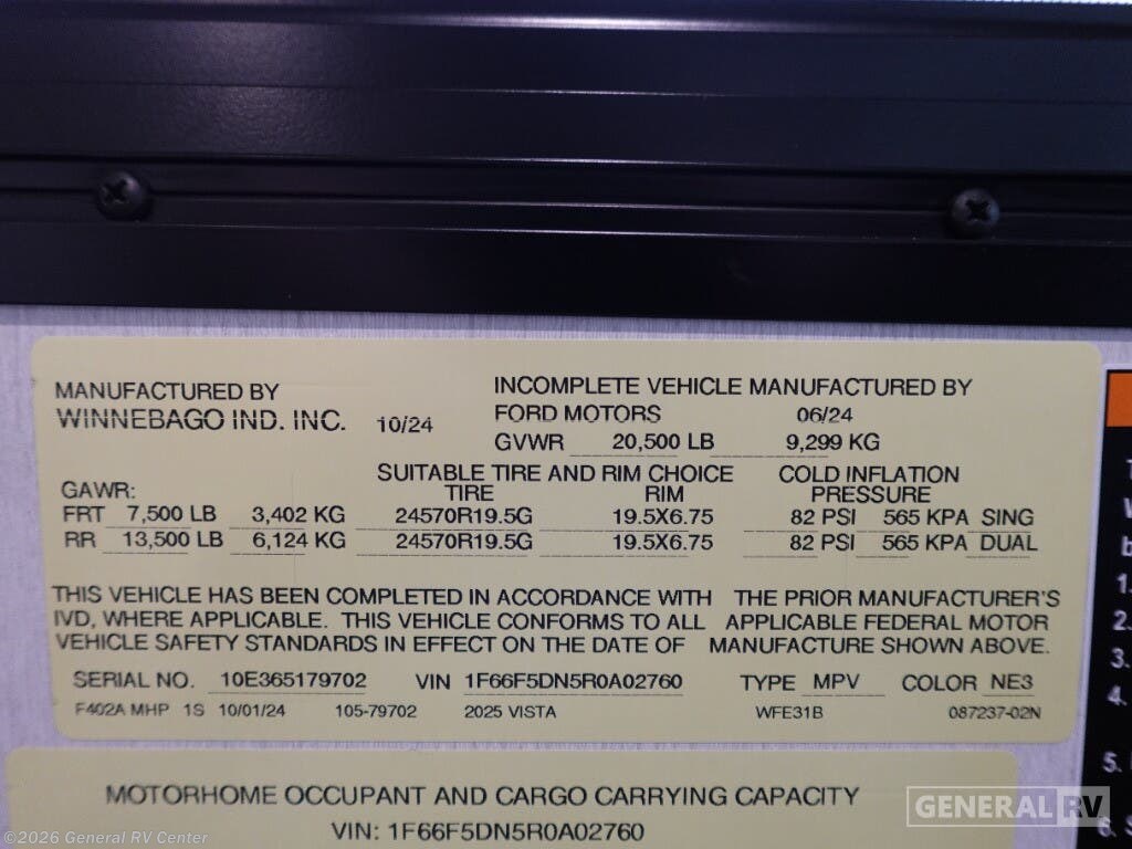 Request More Info on this 2025 Winnebago Vista 31B Offered for sale by General RV Center