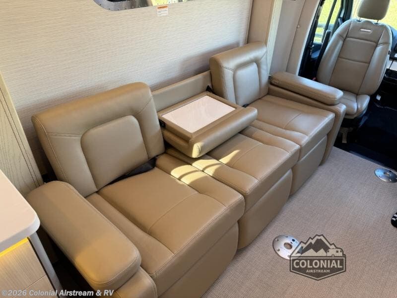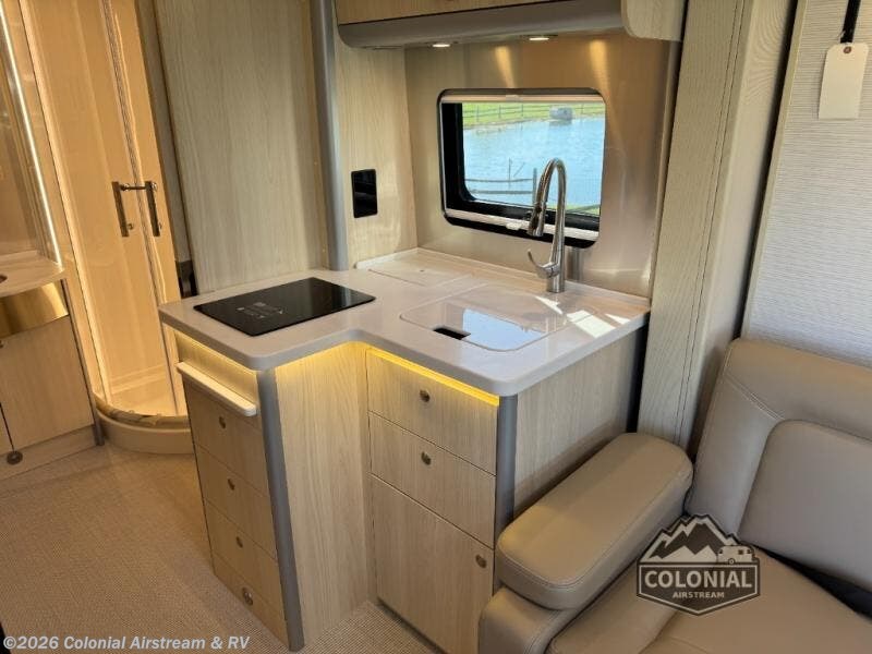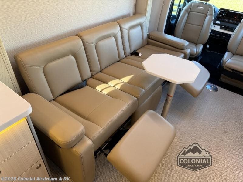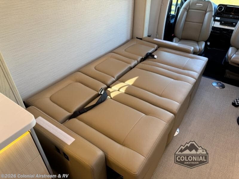 With the Atlas Class B+ diesel motorhome by Airstream, you not only get an enduring Airstream design, conveniences and luxury features, but also the proven Mercedes-Benz safety systems and performance. The coach is built with Azdel composite roof, floor, and wall material, a vacuum-bonded aluminum framed floor, radius walls, a fiberglass crowned roof for extra headroom, trimless smooth fiberglass body seams, and molded fiberglass front and rear caps. And the Mercedes-Benz 2.0L turbo charged 4-cyliner high-output diesel engine will power your many excursions! The main cabin offers adjustable LED lighting, flush-mount cabinet hardware and soft close doors, a Froli ergonomic bed support system for a good night's sleep. You will enjoy Ultraleather seating, USB charging ports for your electronics, marine woven synthetic flooring, and matte finish laminate cabinetry to mention a few highlights.