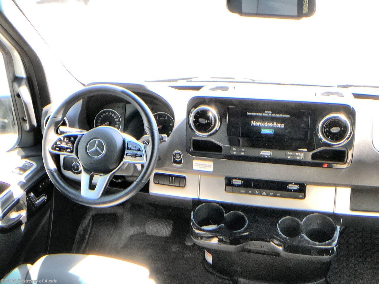 With the Atlas 25MS Class B+ diesel motorhome by Airstream, you not only get an enduring Airstream design, conveniences and luxury features, but also the proven Mercedes-Benz safety systems and performance. The coach is built with Azdel composite roof, floor, and wall material, a vacuum-bonded aluminum framed floor, radius walls, a fiberglass crowned roof for extra headroom, trimless smooth fiberglass body seams, and molded fiberglass front and rear caps. And the Mercedes-Benz 2.0L turbo charged 4-cyliner high-output diesel engine will power your many excursions! The main cabin offers adjustable LED lighting, flush-mount cabinet hardware and soft close doors, a Froli ergonomic bed support system for a good night's sleep. You will enjoy Ultraleather seating, USB charging ports for your electronics, marine woven synthetic flooring, and matte finish laminate cabinetry to mention a few highlights.