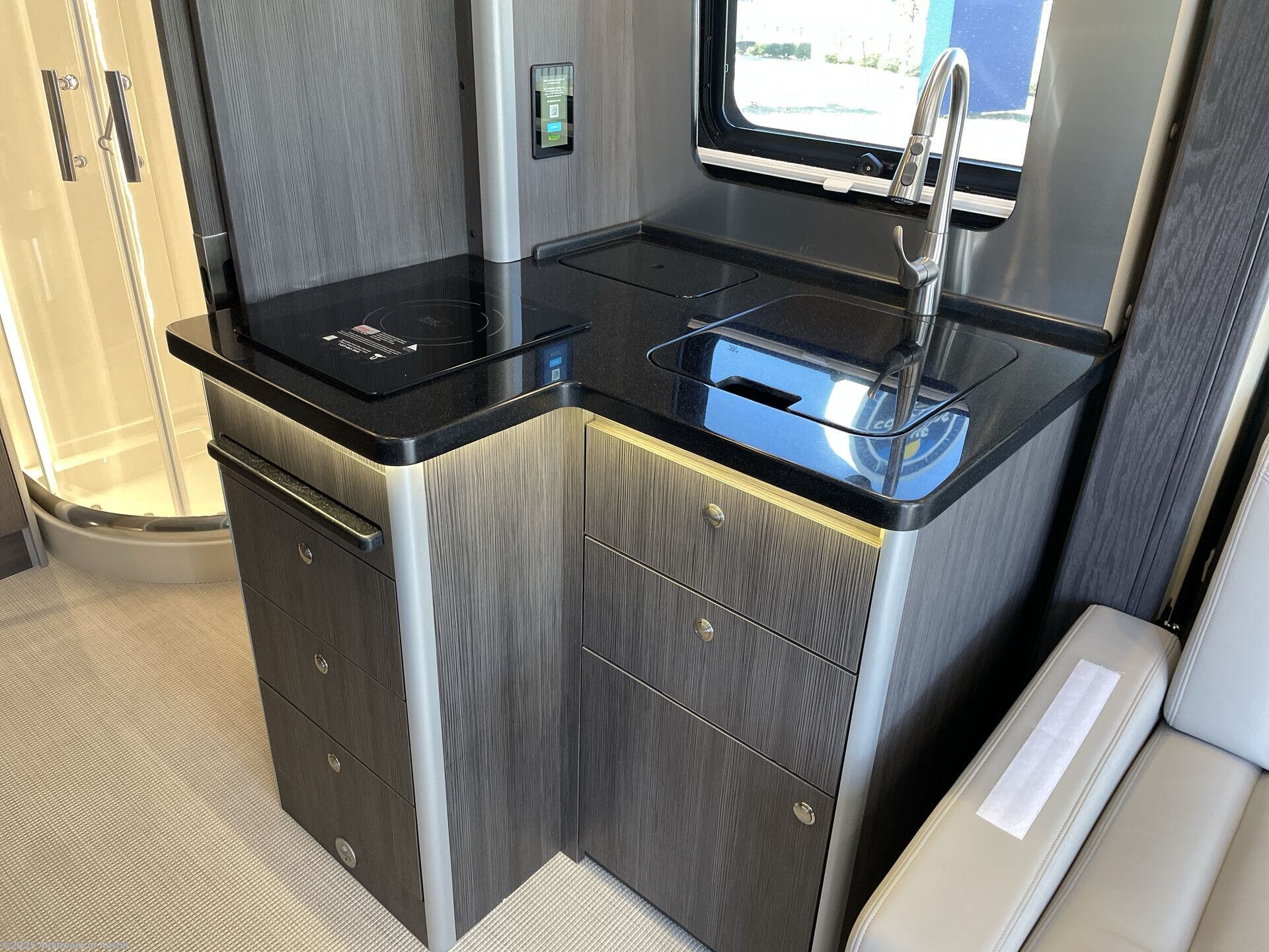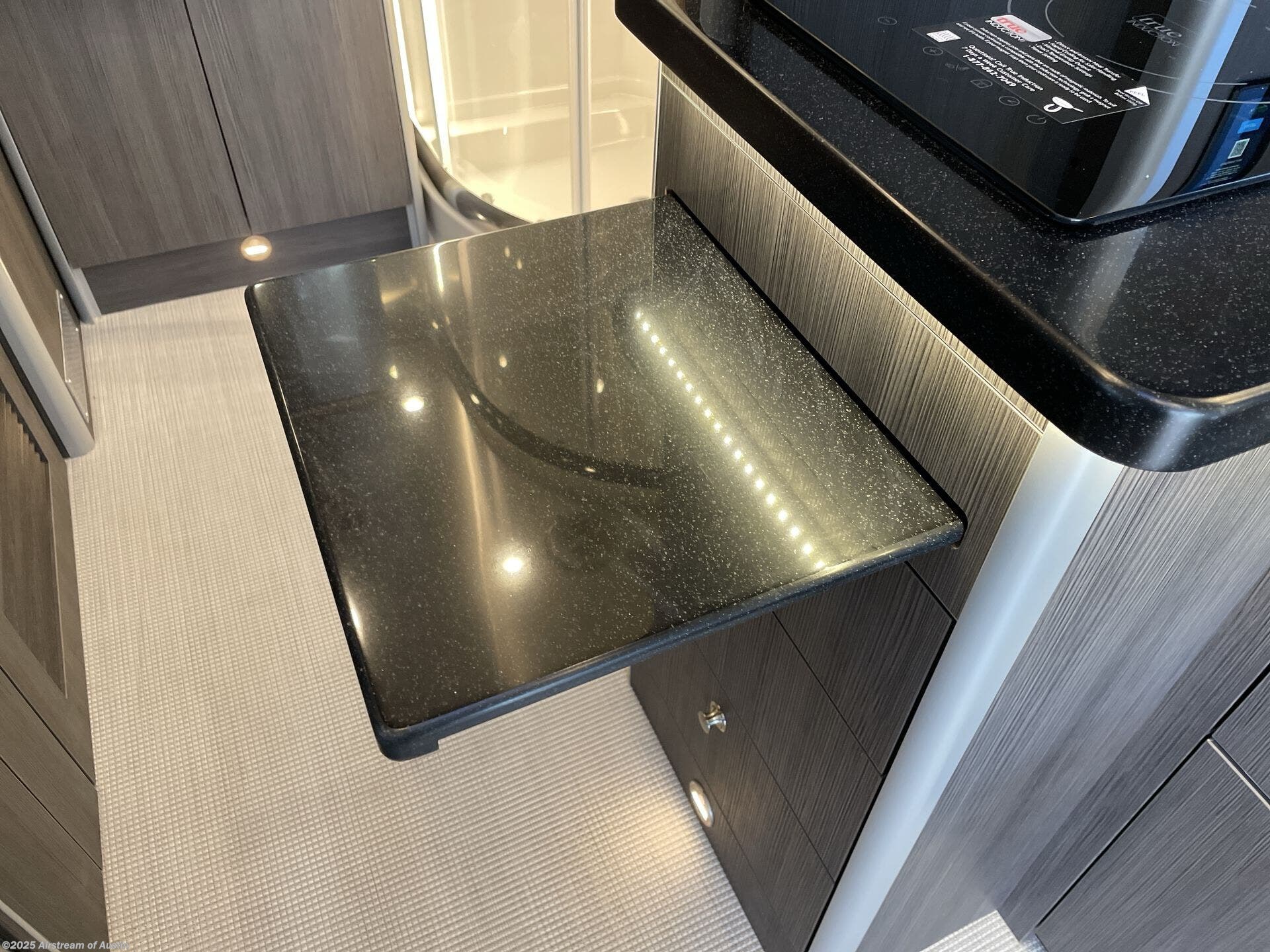 With the Atlas Class B+ diesel motorhome by Airstream, you not only get an enduring Airstream design, conveniences and luxury features, but also the proven Mercedes-Benz safety systems and performance. The coach is built with Azdel composite roof, floor, and wall material, a vacuum-bonded aluminum framed floor, radius walls, a fiberglass crowned roof for extra headroom, trimless smooth fiberglass body seams, and molded fiberglass front and rear caps. And the Mercedes-Benz 2.0L turbo charged 4-cyliner high-output diesel engine will power your many excursions! The main cabin offers adjustable LED lighting, flush-mount cabinet hardware and soft close doors, a Froli ergonomic bed support system for a good night's sleep. You will enjoy Ultraleather seating, USB charging ports for your electronics, marine woven synthetic flooring, and matte finish laminate cabinetry to mention a few highlights.