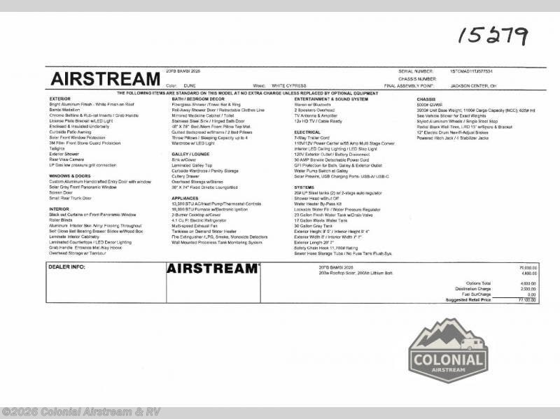 Request More Info on this 2026 Airstream Bambi 20FB Offered for sale by Colonial Airstream & RV