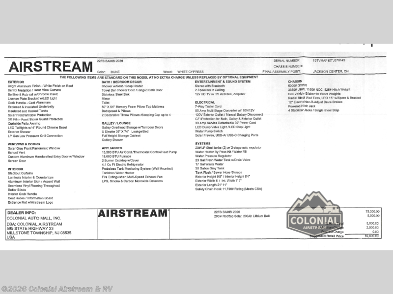 Request More Info on this 2026 Airstream Bambi 22FB Offered for sale by Colonial Airstream & RV