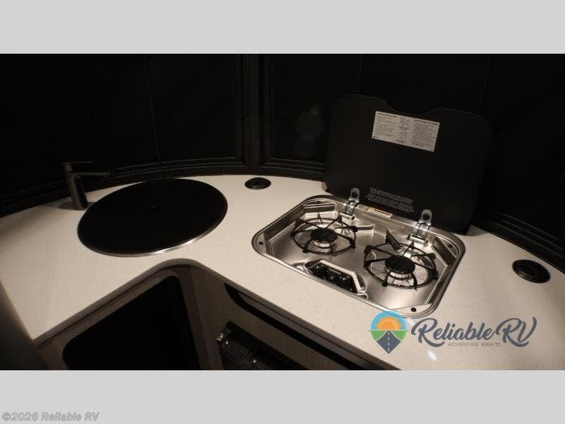 Looking to expand your adventures off the beaten path? You can sleep two on the split benches or convert the half-bed on one side and the full bed that spans the back of the trailer. The two tables with benches allow you to dine with seating for five. Get cleaned up in the wet bath complete with a shower, toilet and sink. And the cook will love the views while using the two-burner gas stove, sink and refrigerator. This Basecamp also offers front panoramic windows and a rear hatch door allowing you to take your snowboards, skis, paddleboards and/or kayaks.