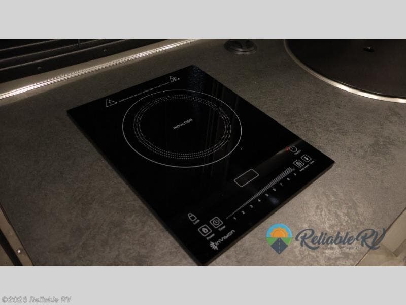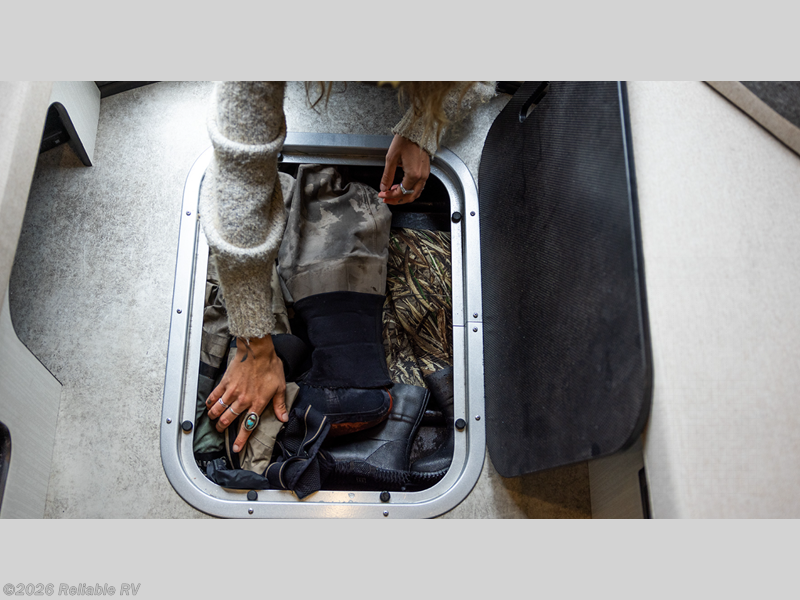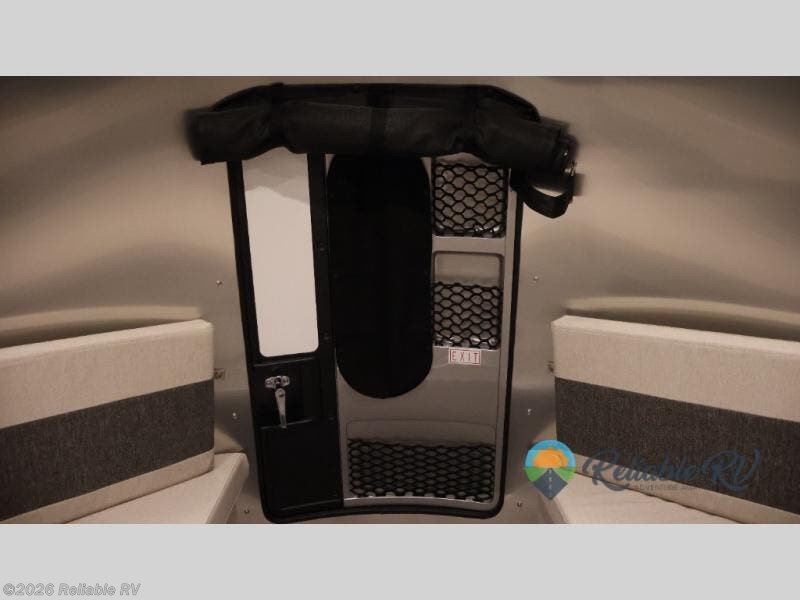 Chart a new map with this travel trailer in tow! Once you arrive at your destination, you can unload your gear, then start lunch on the single burner induction cooktop. An all-electric refrigerator lets you store cold items, and an optional microwave can be added for added convenience. You'll find bench seating in the back with removable tables that can be adjusted to different heights and directions. When it's time for bed, the benches can be converted to a half bed on one side, a full bed that spans the back of the unit, or a split sleeping area. A rear door gives you quick and easy access to your built-in floor storage with a drain, doubling it as a cooler!