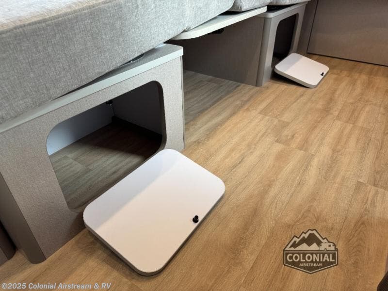 Would you like to enjoy unforgettable trips? If so, all you need is this Caravel travel trailer! The interior is outfitted with handcrafted marine-grade lite-ply laminated cabinetry, dimmable LED lighting, seamless vinyl flooring, and Ultraleather fabric on the furniture for a completely stylish and elegant look. The overhead storage has sliding doors for easy access, and the kitchen is quite engaging with its three-burner gas cooktop, microwave, stainless steel sink with Moen faucet, and Baraldi cooking vent with light. You can even use the LED reading lights at the pillowtop memory foam mattress to finish that last chapter before bed.