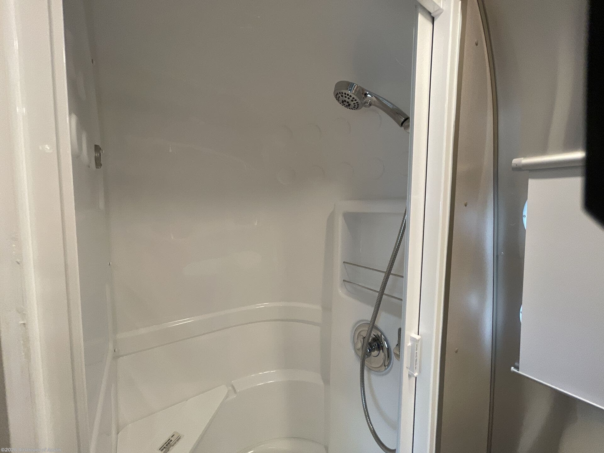 Would you like to enjoy unforgettable trips? If so, all you need is this Caravel travel trailer! The interior is outfitted with handcrafted marine-grade lite-ply laminated cabinetry, dimmable LED lighting, seamless vinyl flooring, and Ultraleather fabric on the furniture for a completely stylish and elegant look. The overhead storage has sliding doors for easy access, and the kitchen is quite engaging with its three-burner gas cooktop, microwave, stainless steel sink with Moen faucet, and Baraldi cooking vent with light. You can even use the LED reading lights at the pillowtop memory foam mattress to finish that last chapter before bed.