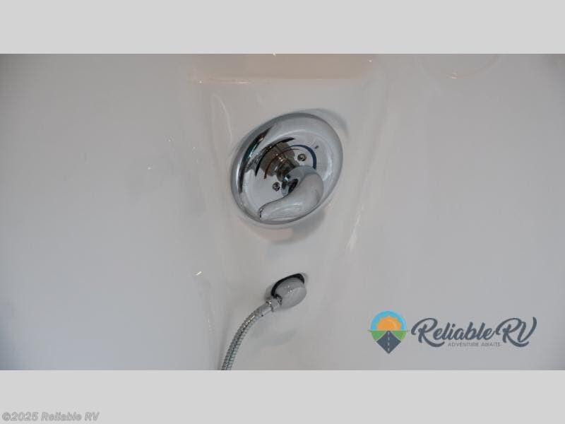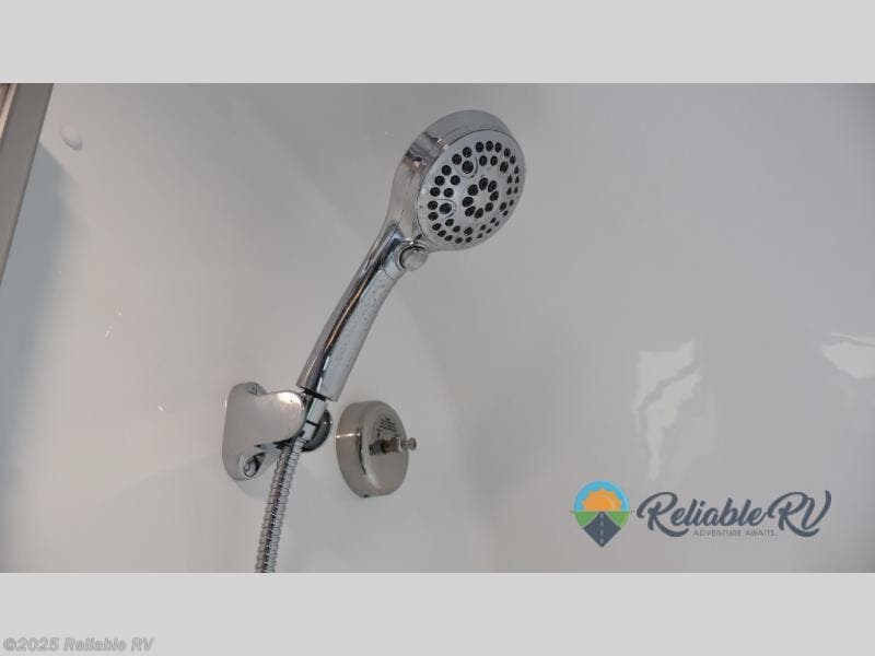 The pillowtop memory foam mattress fits perfectly into the curves of this Caravel travel trailer which offers you the perfect place to relax! There are panoramic windows surrounding this area with blackout curtains that you can close when you need some privacy, and the LED reading lights will provide some illumination while you are lounging. You can also lift up the bed to reveal the under-bed storage. The U-shaped dinette is another feature that provides two uses. It can be a great dining place for four people, or it can serve as a bed for two. The bathroom is located in the back for a little more privacy, and it offers a large vanity, a retractable clothesline in the shower, and a removable handheld shower head.