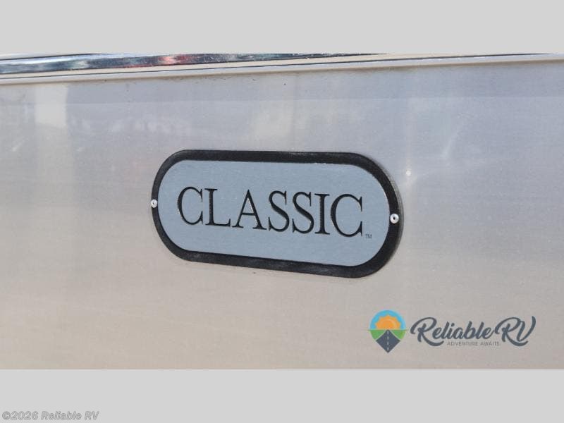 Enjoy luxury camping trips in this Classic travel trailer that really is a classic! The rear bedroom includes twin beds, along with storage space so you can keep your things organized. You can make breakfast on the three burner cooktop or in the convection microwave, and there is an 8.2 cu. ft. 12V refrigerator to keep your food fresh. A powered dinette and powered front lounge provide a place to relax, dine, and convert to sleeping space with the push of a button. The independent shower is right across the hall from the half bath for added convenience, and you're sure to appreciate the added comfort features, such as a heated towel bar, Kohler faucet and removable handheld aerating shower head!