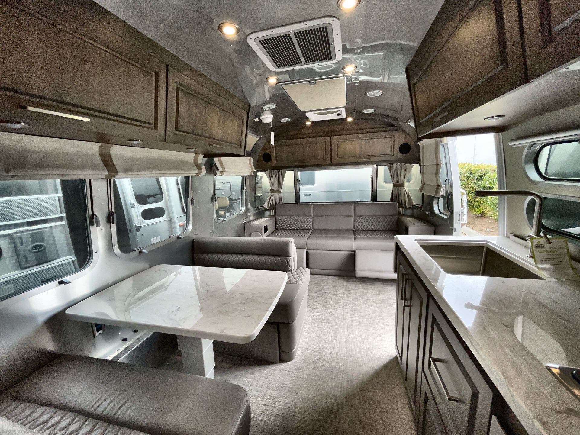 When it comes to full-time luxury living on the road, none other will do than a Classic travel trailer by Airstream. The sophisticated interior includes Ultraleather seating, a luxurious bathroom, handcrafted hardwood cabinetry, and a top-of-the-line kitchen with premium appliances. You will appreciate the rear-view monitoring system to easily park your trailer at the campsite, plus there are four powered heavy duty stabilizer jacks for easy set up. After you've unpacked, set up the powered ZipDee patio awning and adjust the LED dimmable awning light as you enjoy a cold drink. The Classic travel trailers also include QuiteStream climate control that cools your unit quietly and evenly for a truly comfortable environment! Additional features you'll appreciate include a doorbell, a safe for valuables, two cushion ZipDee chairs, and premium environmental friendly insulation.