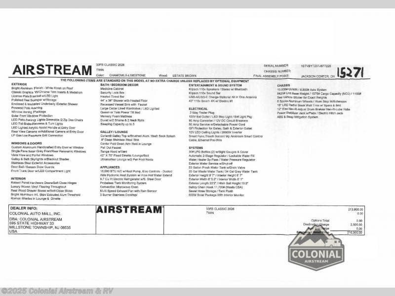 Request More Info on this 2026 Airstream Classic 33FBT Twin Offered for sale by Colonial Airstream & RV