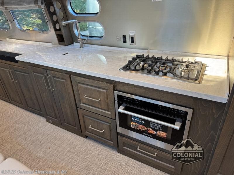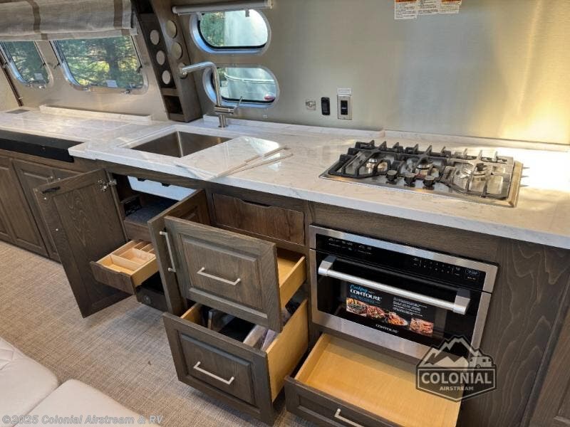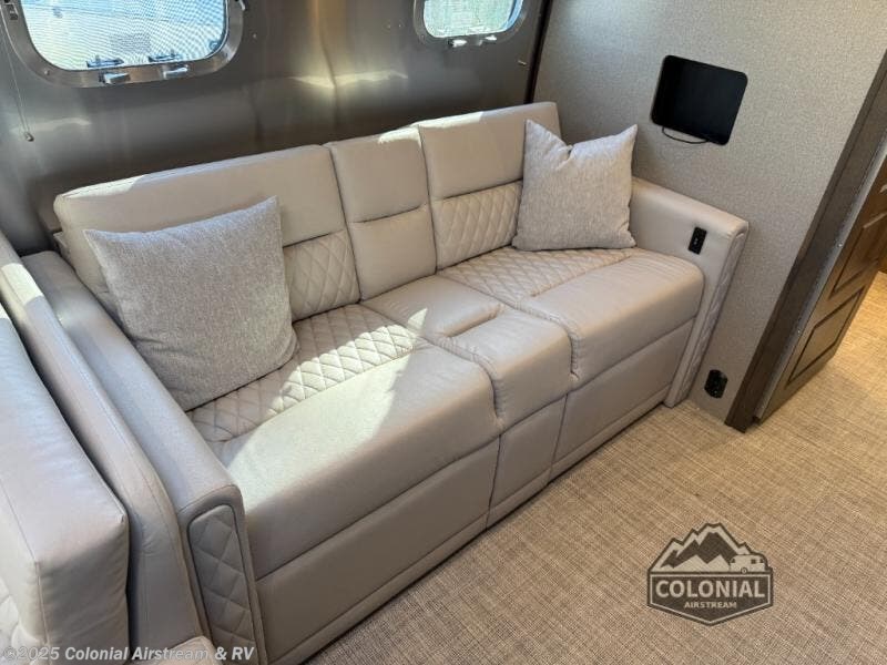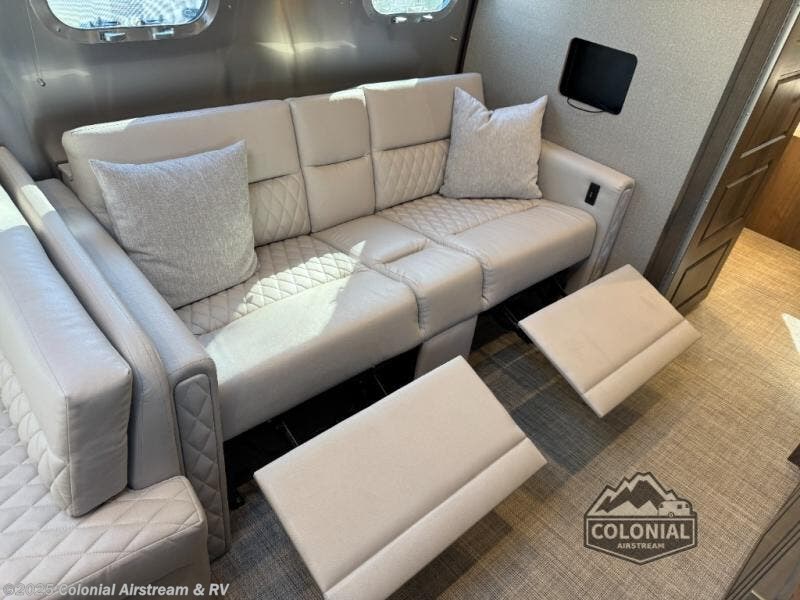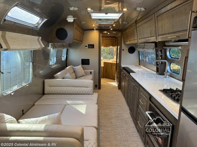 When it comes to full-time luxury living on the road, none other will do than a Classic travel trailer by Airstream. The sophisticated interior includes Ultraleather seating, a luxurious bathroom, handcrafted hardwood cabinetry, and a top-of-the-line kitchen with premium appliances. You will appreciate the rear-view monitoring system to easily park your trailer at the campsite, plus there are four powered heavy duty stabilizer jacks for easy set up. After you've unpacked, set up the powered ZipDee patio awning and adjust the LED dimmable awning light as you enjoy a cold drink. The Classic travel trailers also include QuiteStream climate control that cools your unit quietly and evenly for a truly comfortable environment! Additional features you'll appreciate include a doorbell, a safe for valuables, two cushion ZipDee chairs, and premium environmental friendly insulation.