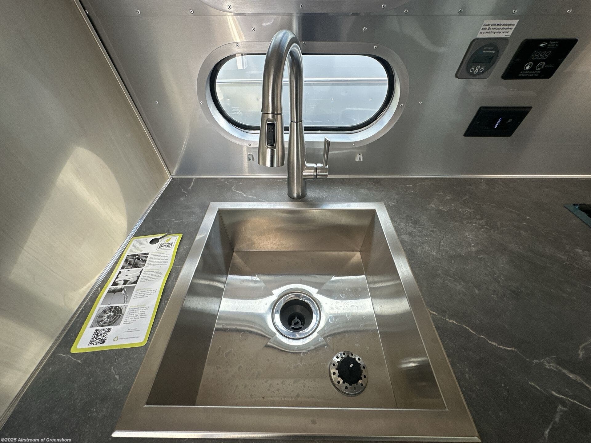 With each Flying Cloud travel trailer by Airstream, there are two axles, and each is built for ease of towing, plus there is a rear-view camera to make reversing and parking easier, and stainless steel front stone guards to protect the lower segments from road debris. The iconic Airstream design is created outside and inside by the semi-monocoque aluminum superstructure, the temperature reducing one-piece white aluminum roof, the panoramic front windows, and the stylish aluminum wheels. The interior will have you feeling right at home with handcrafted cabinetry, plenty of storage and counter space, sleek roller blinds and blackout curtains, plus residential style faucets!
