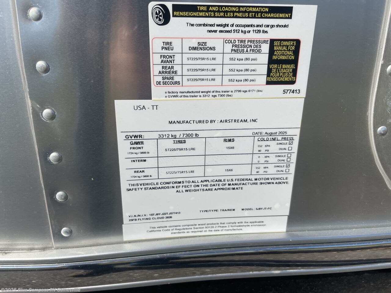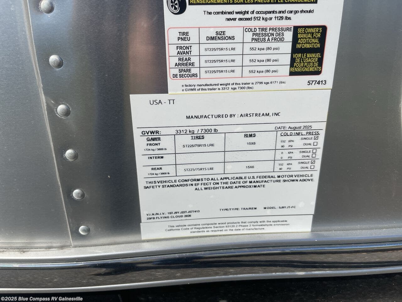2026 Airstream Flying Cloud 25FB Specifications