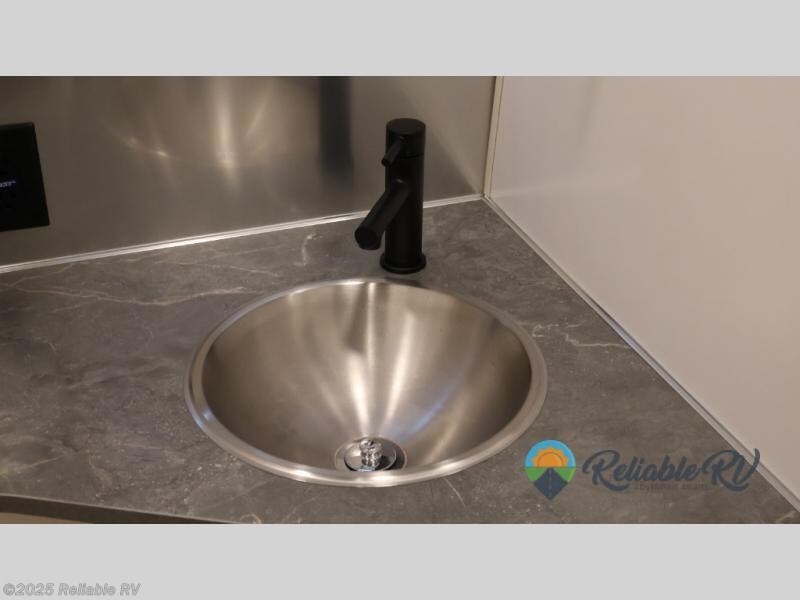When you enjoy the finer things when traveling, this trailer will provide that for you plus lots of natural lighting and plenty of conveniences. The convertible rear dinette offers a place to dine and socialize for four, and there is a lounging area along the side with a TV on the wall. The table acts as a sturdy base below the cushions when you need some sleeping space. The front bedroom offers more panoramic windows and comfortable twin beds with a view each morning and night. You will find storage for your clothing, and a split bathroom with a half bath on one side and a shower that stands independently across the hall. And the kitchen offers everything you need to make meals including extra counter space and a 12V refrigerator for leftovers. The Midnight Flamingo optional upgrade is also available on this model for even more striking style and functional upgrades!