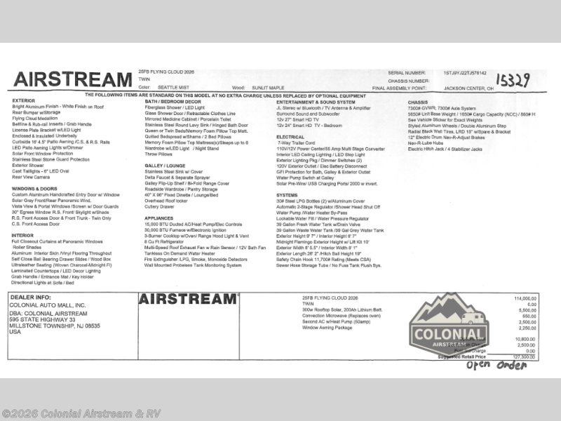 Request More Info on this 2026 Airstream Flying Cloud 25FBT Twin Offered for sale by Colonial Airstream & RV