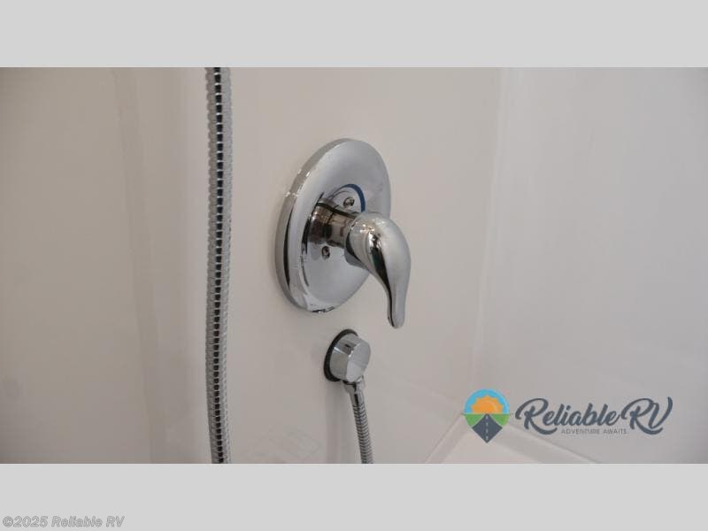 Whether you stay at a campground or an RV park, you will love relaxing inside on the comfortable furniture and the memory foam twin mattresses while gazing out all the windows and enjoying the natural lighting. The toilet and vanity are separate from the shower allowing two people to use the facilities at once. And the cook will have a spacious galley to make meals using the LP gas stove with a stainless-steel sink, and the refrigerator can hold the leftovers that is opposite the stove. And you might even like to add a few options such as a front bunk option over the twin beds, an optional rear hatch and/or a window awning package. The Midnight Flamingo optional upgrade is also available on this model for even more striking style and functional upgrades!