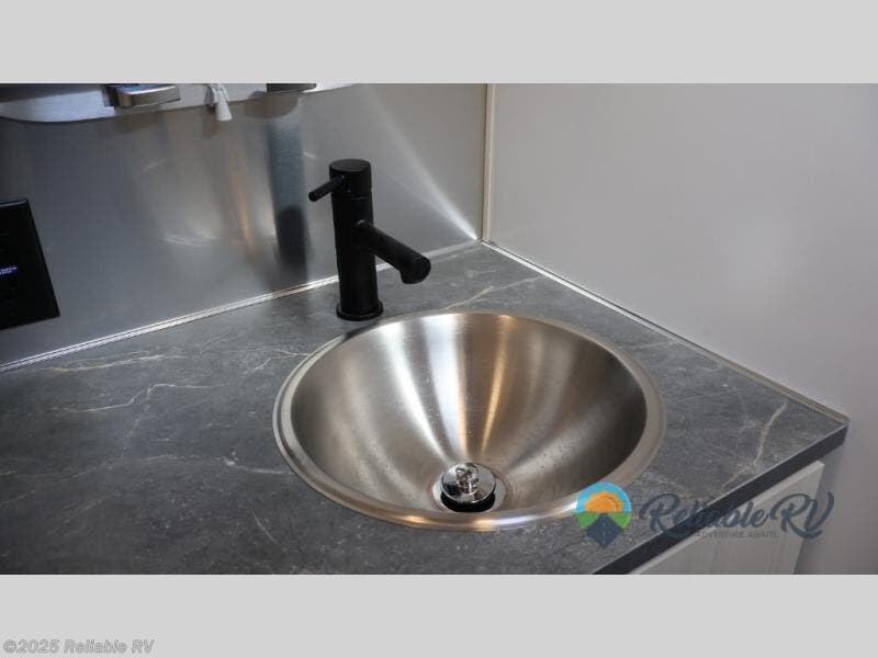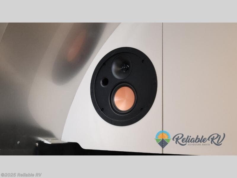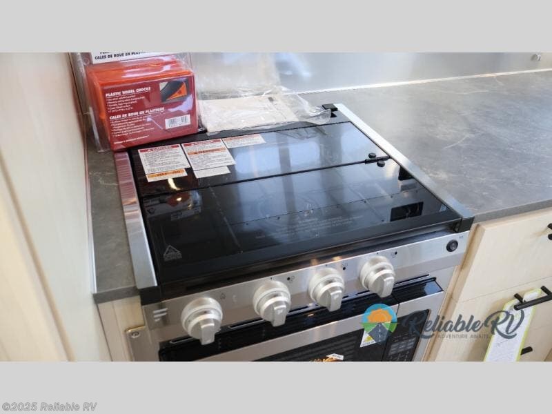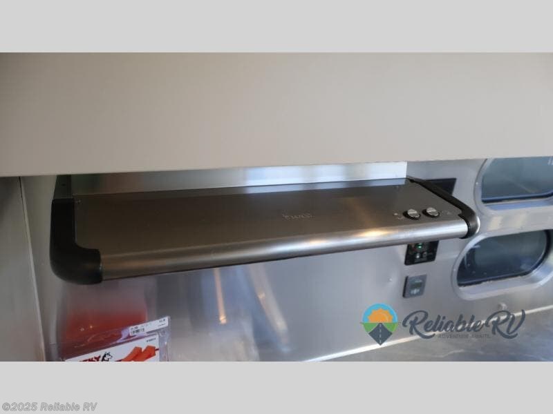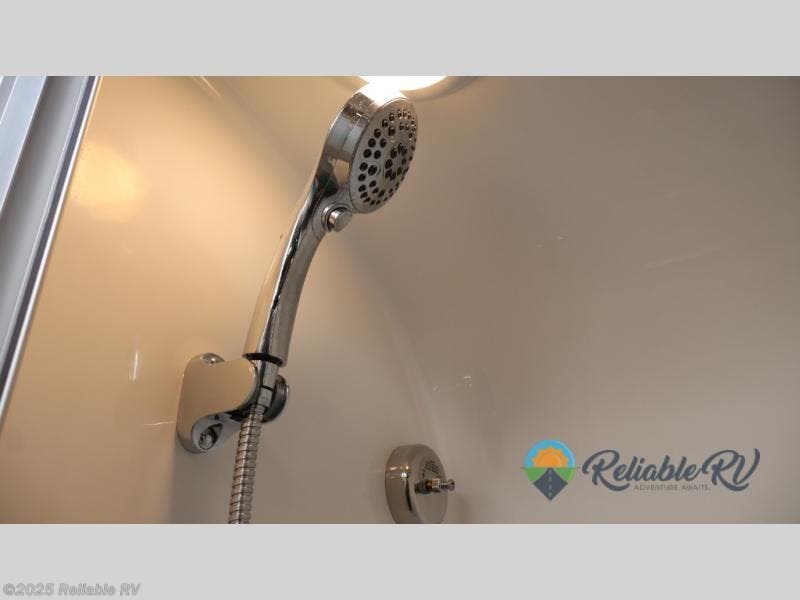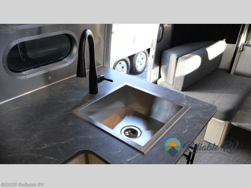 With each Flying Cloud travel trailer by Airstream, there are two axles, and each is built for ease of towing, plus there is a rear-view camera to make reversing and parking easier, and stainless-steel front stone guards to protect the lower segments from road debris. The iconic Airstream design is created outside and inside by the semi-monocoque aluminum superstructure, the temperature reducing one-piece white aluminum roof, the panoramic front windows, and the stylish aluminum wheels. The interior will have you feeling right at home with handcrafted cabinetry, plenty of storage and counter space, sleek roller blinds and blackout curtains, plus residential style faucets!
