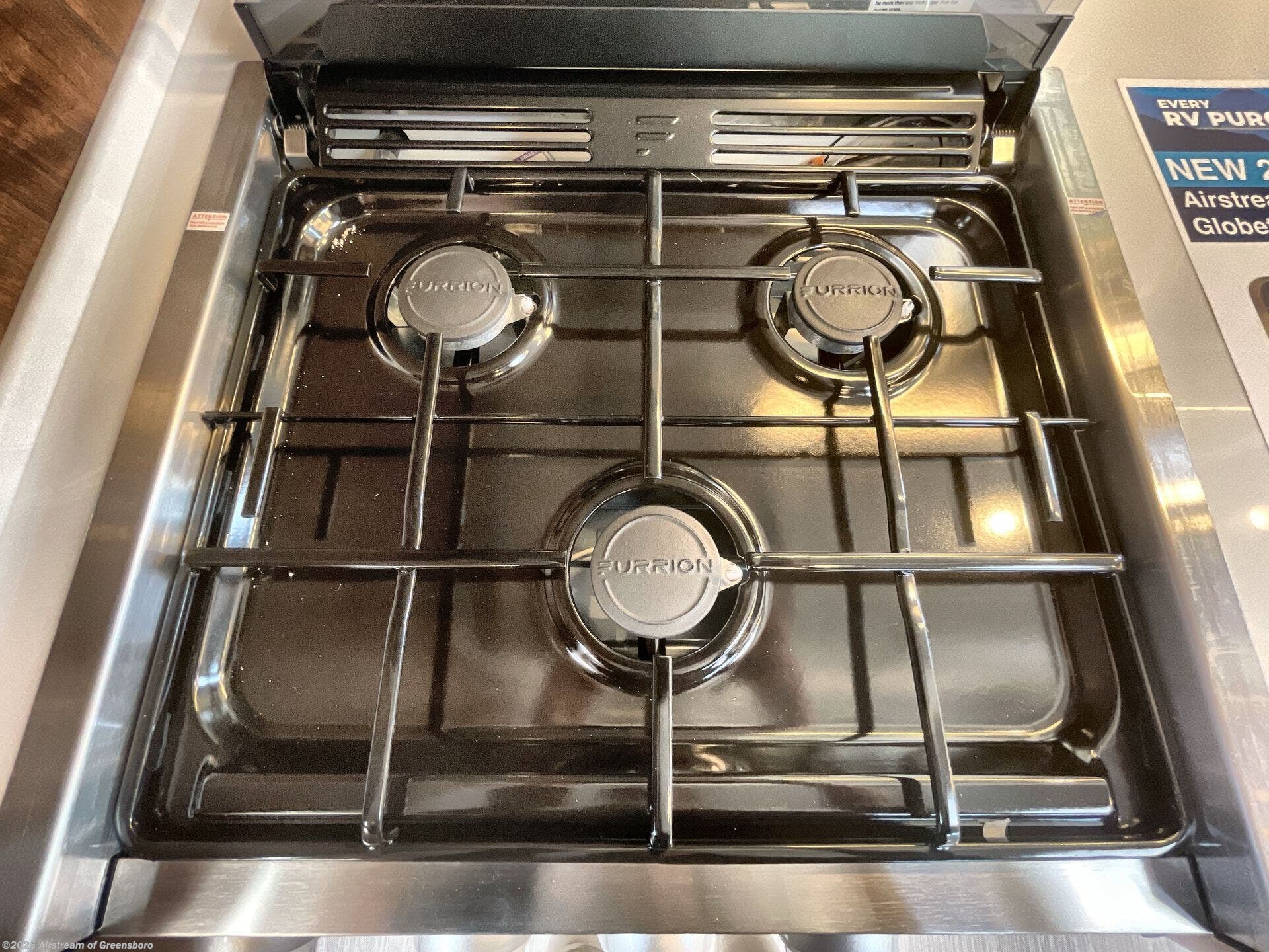 You will find comfort and luxury all throughout this travel trailer! From the front twin beds with AdaptaFlex memory foam mattresses and nightstands on either side, to the rear L-shaped lounge that you can enjoy your meals at and convert into an extra sleeping space. The separated bathroom has a private toilet and vanity together across from an independent shower with a seat to freshen up each morning. You can prepare your best meals in the ultra-modern kitchen with the stainless steel three burner cooktop, the oven, the deep stainless steel Moen sink, and the DuPont Corian countertops will be easy to clean, plus they have multifunctional storage bins that are flush to the surface behind the sink.
