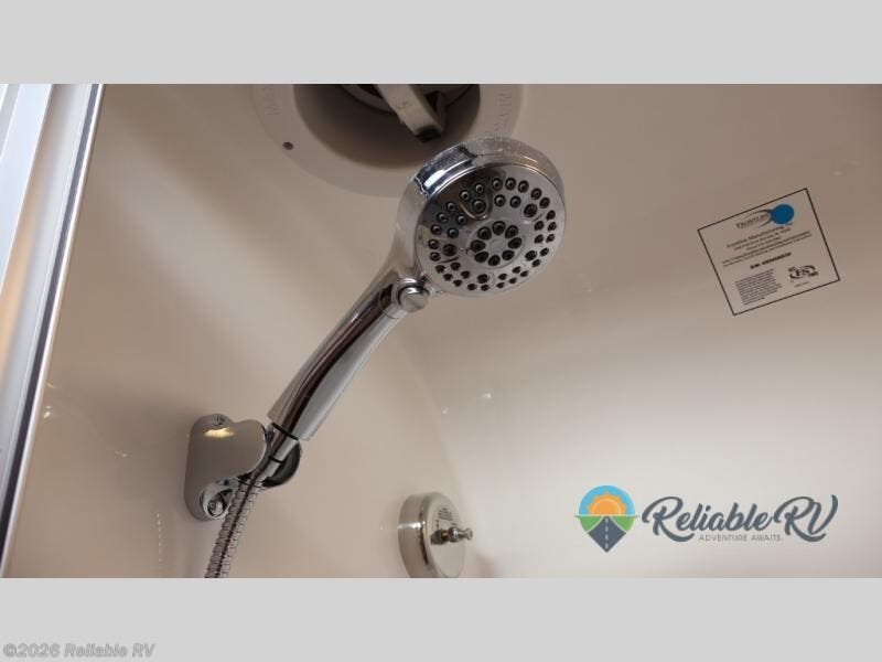 Start traveling the country in true luxury with this travel trailer! It features a front wrap around lounge with stain resistant Spradling Hitch fabric that can be pulled out and the table lowered to create a 38" x 84" sleeping space. A separated bathroom makes it easy for one person to freshen up in the shower with a seat while another is across the way utilizing the private toilet and vanity. The rear queen bed has a memory foam mattress to enjoy a good night's rest, nightstands to set your glass of water, and a 24" 12V DC Smart TV to watch your favorite movie in bed. If you'd like a center aisle and longer mattresses, just choose the optional twin beds! You will find plenty of storage throughout between the upper and lower kitchen cabinets, a slide-out pantry, multifunctional storage bins that are flush to the surface behind the deep stainless steel Moen sink, under-the-bed storage, and a closet to hang your clothes.