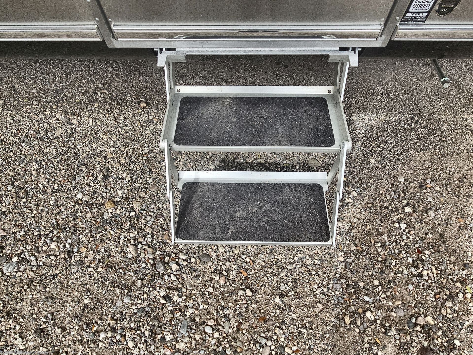 Start traveling the country in true luxury with this travel trailer! It features a front wrap around lounge with stain resistant Spradling Hitch fabric that can be pulled out and the table lowered to create a 38" x 84" sleeping space. A separated bathroom makes it easy for one person to freshen up in the shower with a seat while another is across the way utilizing the private toilet and vanity. The rear queen bed has a memory foam mattress to enjoy a good night's rest, nightstands to set your glass of water, and a 24" 12V DC Smart TV to watch your favorite movie in bed. If you'd like a center aisle and longer mattresses, just choose the optional twin beds! You will find plenty of storage throughout between the upper and lower kitchen cabinets, a slide-out pantry, multifunctional storage bins that are flush to the surface behind the deep stainless steel Moen sink, under-the-bed storage, and a closet to hang your clothes.