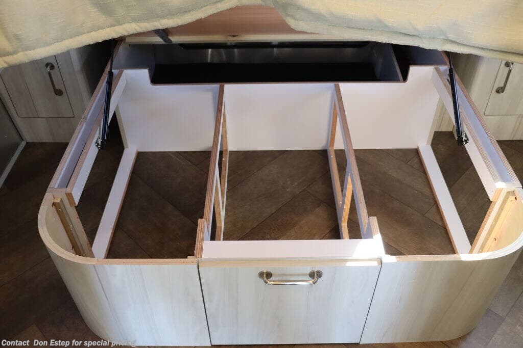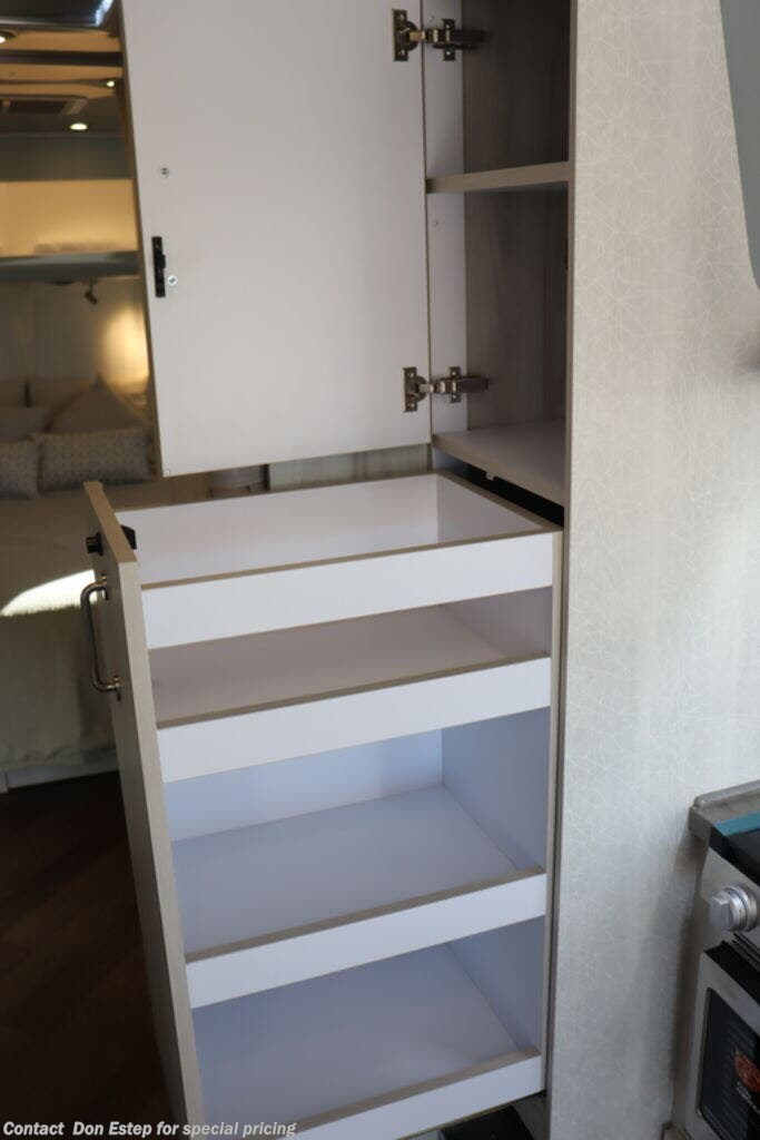 - Overhead Storage with Sliding Doors and LED Lighting