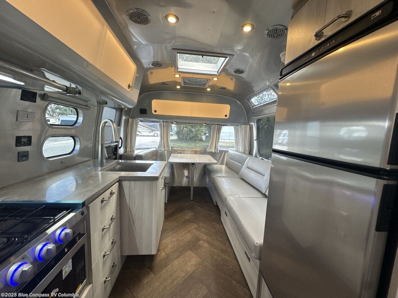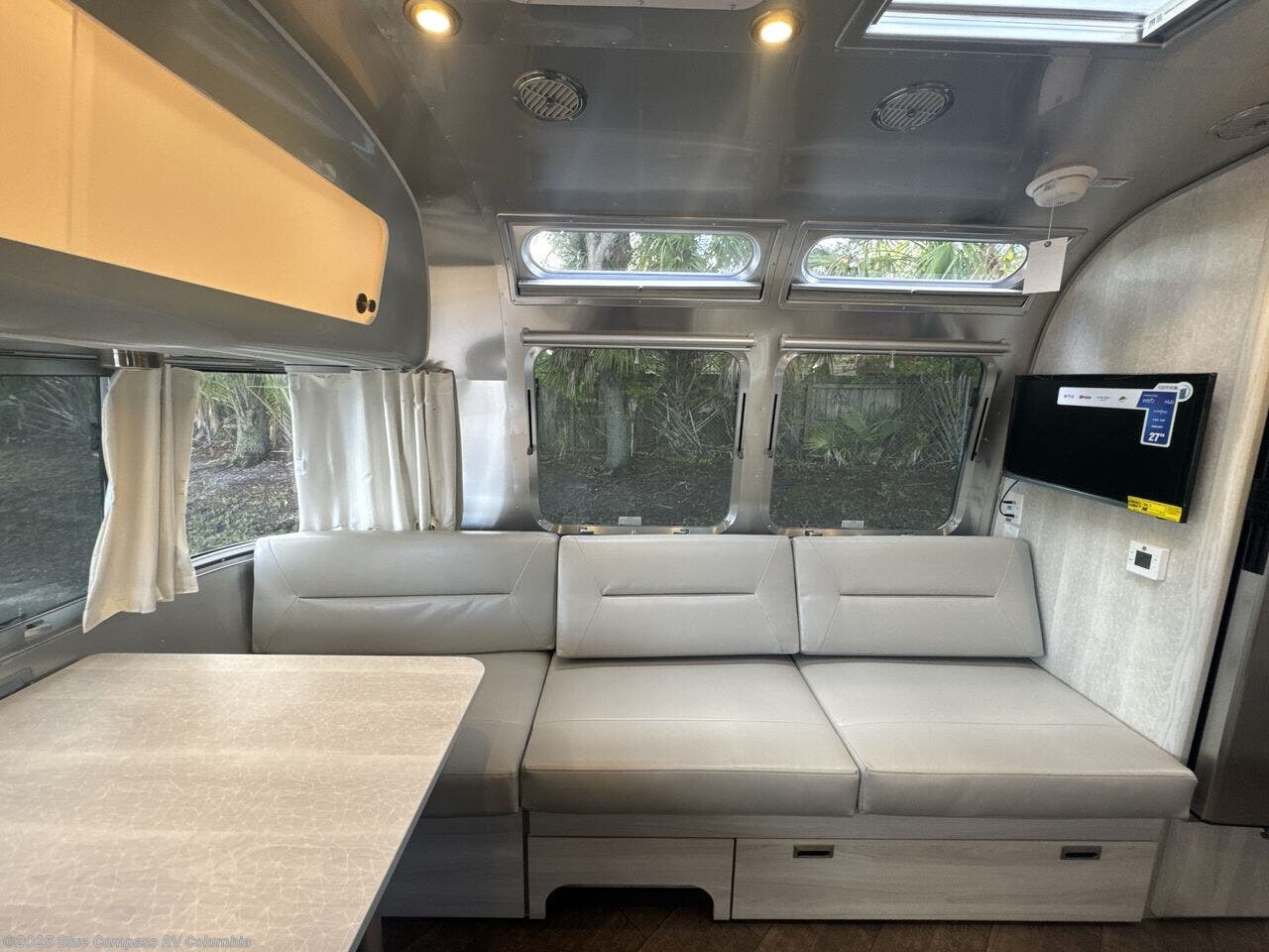 Every time you step foot into the Airstream International travel trailer, you will feel as if you are breathing in a breath of fresh air! The fresh coastal décor was inspired by the waterfront, and the stylish interior delivers a relaxing environment and comfortable luxury. The panoramic windows increase the amount of natural sunlight that streams through to the interior, but they also have blackout shades that you can close whenever you need a darkened room. The beautiful handcrafted marine-grade Lite-Ply laminated cabinetry is an attractive base for the overhead storage lockers that have sliding doors and LED lighting. The dimmable interior LED lighting will create the perfect amount of illumination for you as you spend time indoors. The exterior has excellent features as well with its enclosed aluminum insulated heated underbelly, unique front door key with heavy-duty deadbolt, optional solar package, solar front window protection, and exterior shower with hot and cold water.