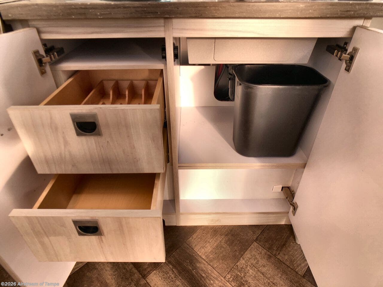 Every time you step foot into the Airstream International travel trailer, you will feel as if you are breathing in a breath of fresh air! The fresh coastal décor was inspired by the waterfront, and the stylish interior delivers a relaxing environment and comfortable luxury. The panoramic windows increase the amount of natural sunlight that streams through to the interior, but they also have blackout shades that you can close whenever you need a darkened room. The beautiful handcrafted marine-grade Lite-Ply laminated cabinetry is an attractive base for the overhead storage lockers that have sliding doors and LED lighting. The dimmable interior LED lighting will create the perfect amount of illumination for you as you spend time indoors. The exterior has excellent features as well with its enclosed aluminum insulated heated underbelly, unique front door key with heavy-duty deadbolt, optional solar package, solar front window protection, and exterior shower with hot and cold water.