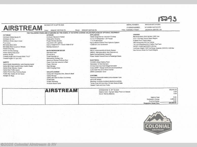 Request More Info on this 2026 Airstream Interstate 19GT Std. Model Offered for sale by Colonial Airstream & RV