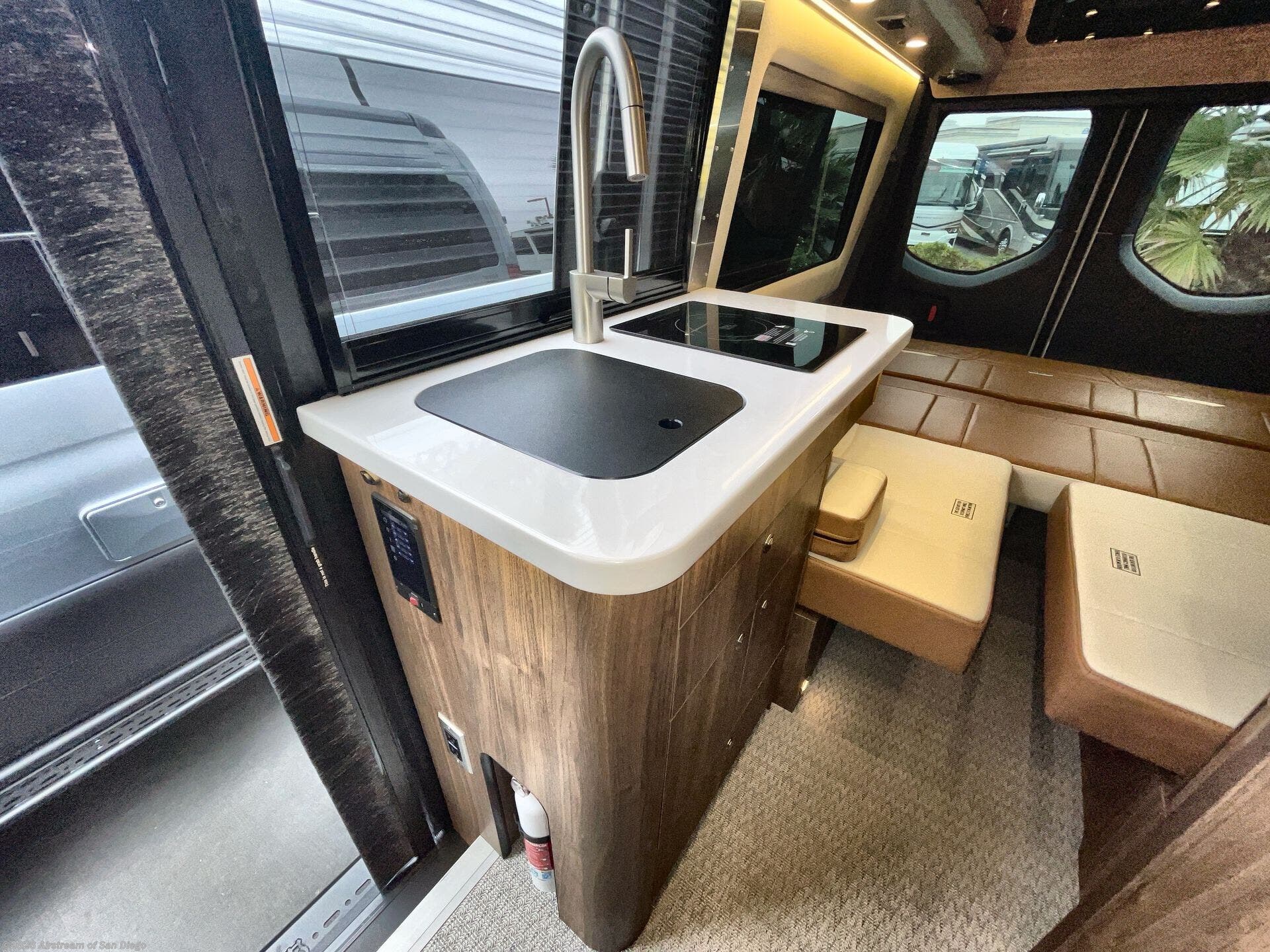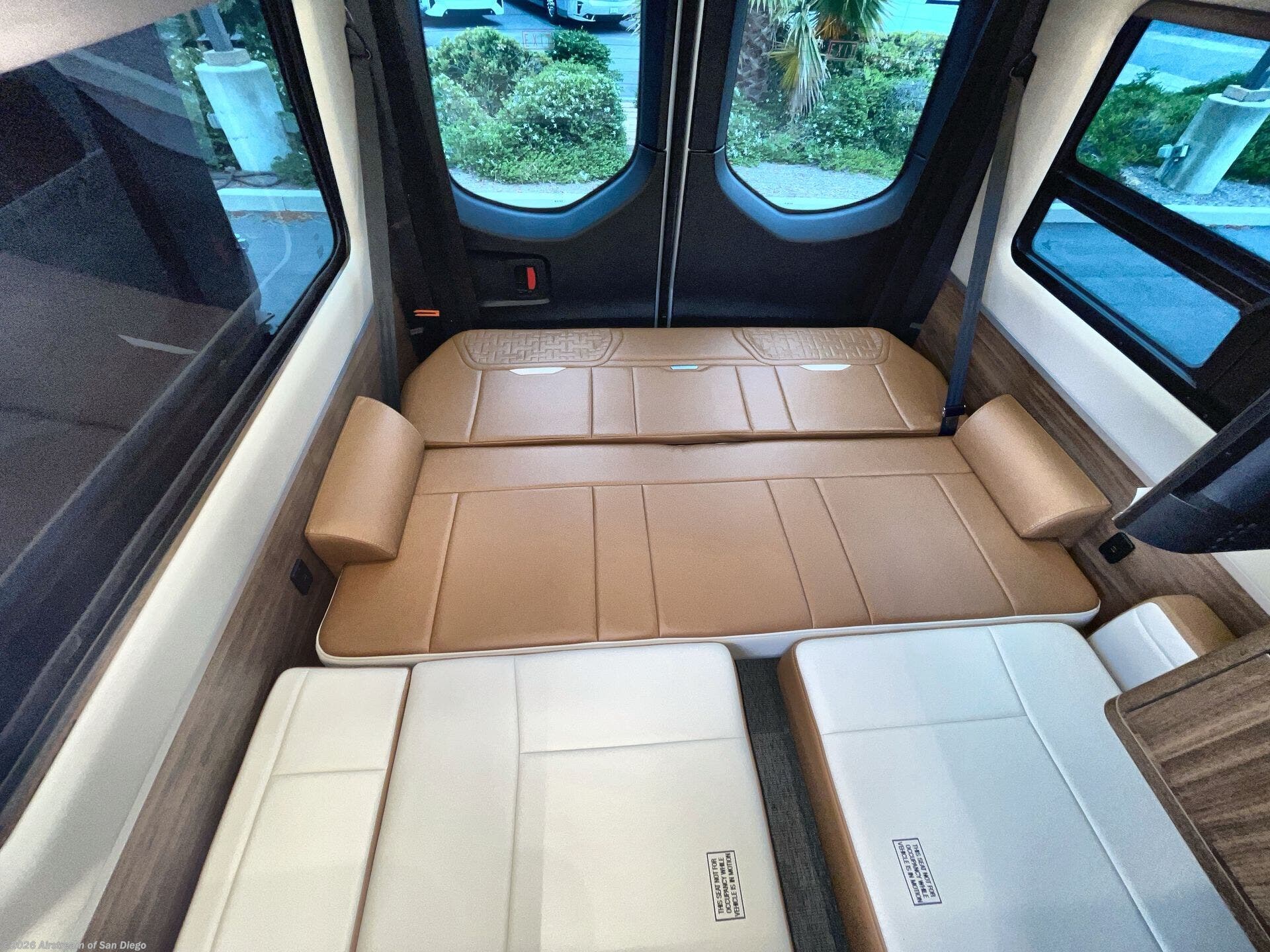 Take this nimble coach out on the road and straight for adventure! The swivel captain's seats can be turned around once you park, allowing you to chat with the chef of your group as they make lunch on the single-burner induction cooktop. The European-style wet bath includes a retractable clothesline, a riveted aluminum porthole door and even a towel rack for added convenience. When you're ready for some shut eye, the rear power sofa/bed and side seats fold down, giving you a large sleeping area with the push of a button!