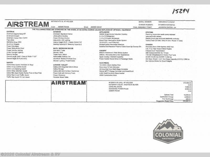 Request More Info on this 2026 Airstream Interstate 24GL Offered for sale by Colonial Airstream & RV