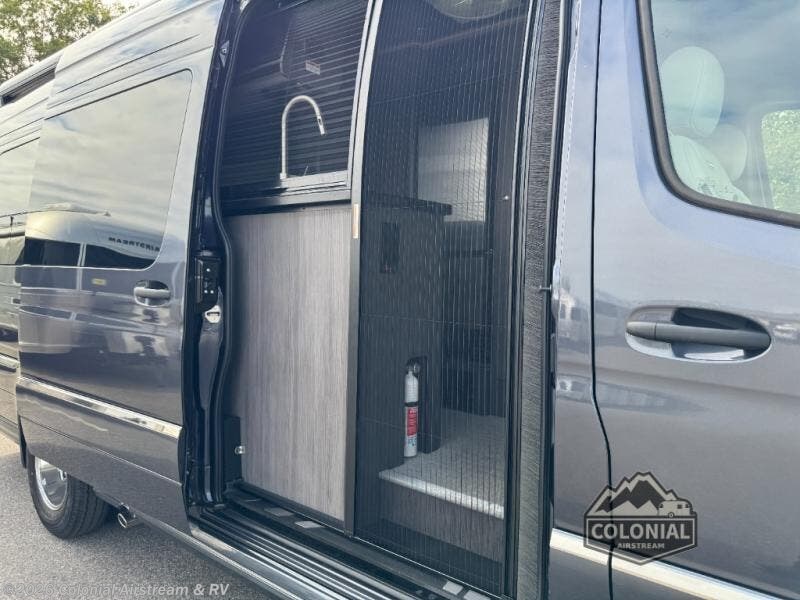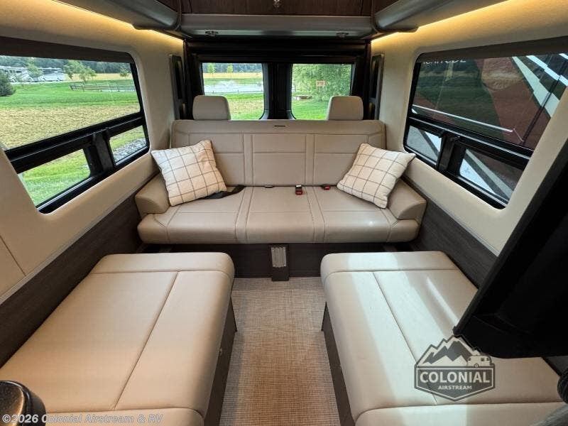 The Airstream Interstate 24GT Class B diesel motorhome offers comfort, performance and safety with the Mercedes-Benz Sprinter 3500 extended chassis, the 3.0L V6 turbo diesel engine, BlueTEC SCR technology, and Adaptive Electronic Stability Program. Also included: active blind spot, brake, driver attention, rear cross traffic assist, plus more safety features giving you peace of mind on the road. More standout features include the power-sliding side door for ease in entering and exiting with a built-in screen door to allow airflow when parked, storage cubbies with USB charging ports, and a super comfortable Ultraleather sofa that offers both seating and sleeping space. You will also appreciate the touch screen/touch pad electronic controls with an Energy Management system, and a 400 watt solar system for off-grid camping