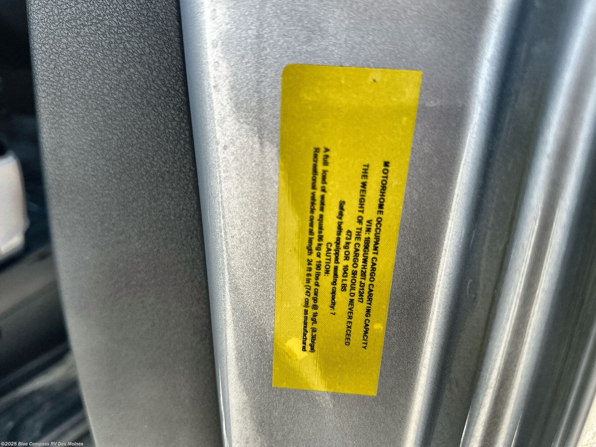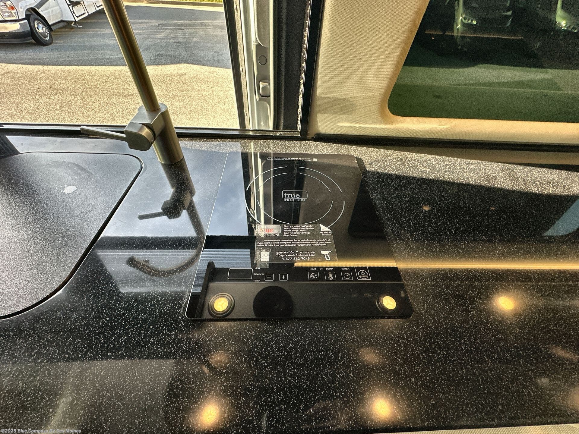 Get ready to drive and stay in comfort and luxury in this motorhome with everything you need and everything you didn't even know you wanted! The heated driver and passenger seats swivel to face the interior living space allowing you to utilize the Corian countertop with backsplash. Whip up a meal using the galley kitchen featuring a single-burner induction cooktop, and a sink and faucet, plus extra counter space for food prep. There is also a 1.2 cu. ft. drawer microwave, plus a pantry with built-in drawers and a refrigerator with a freezer across from the sink. The power sofa in the rear can be fully flat with a push of a button so two can sleep or rest. And there is storage throughout for your hanging clothes, towels, luggage, dishes and more.