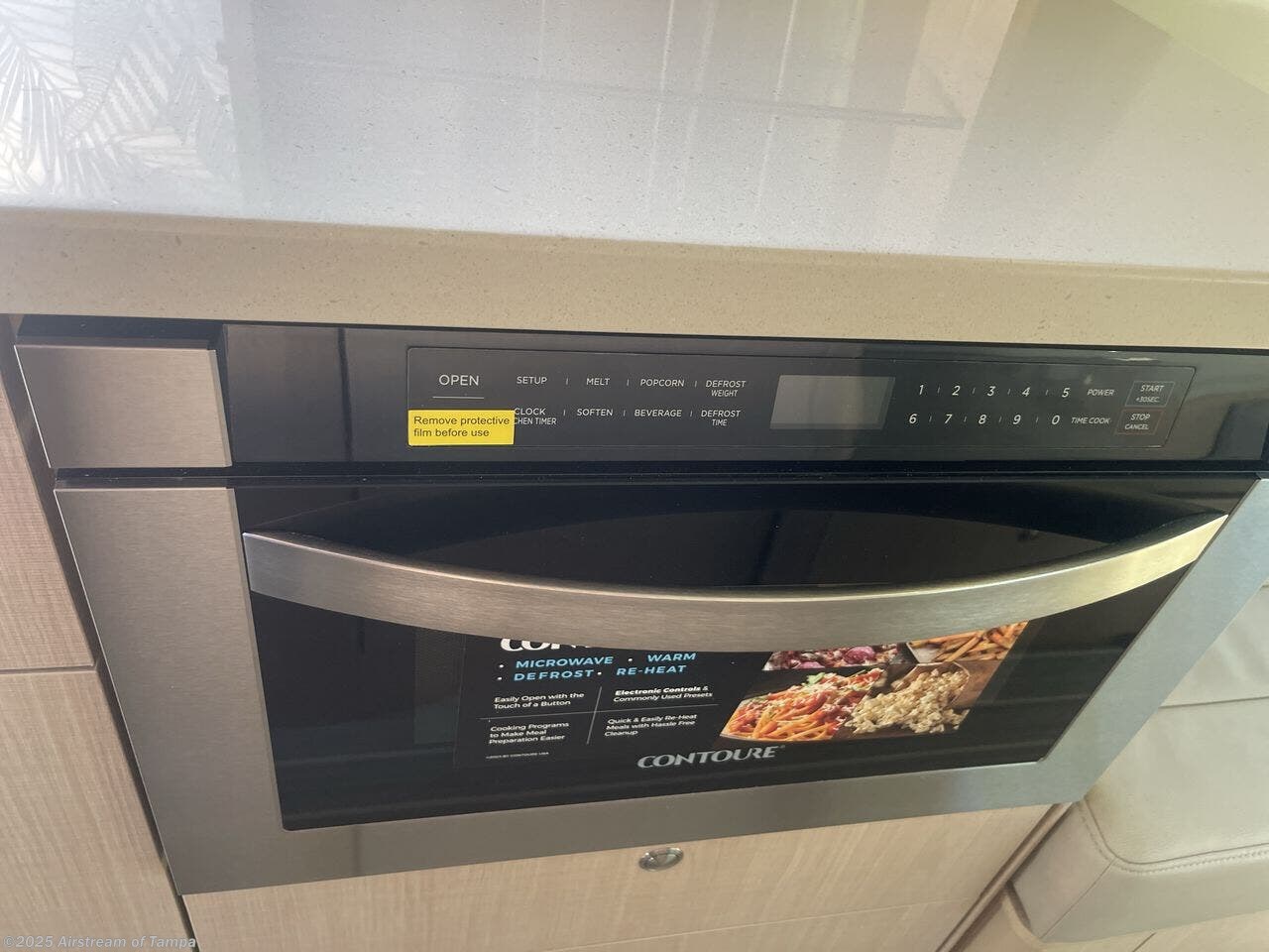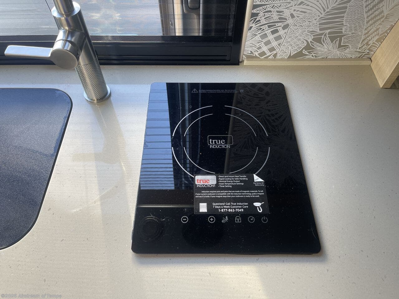 Get ready to drive and stay in comfort and luxury in this motorhome with everything you need and everything you didn't even know you wanted! The heated driver and passenger seats swivel to face the interior living space allowing you to utilize the Corian countertop with backsplash. Whip up a meal using the galley kitchen featuring a single-burner induction cooktop, and a sink and faucet, plus extra counter space for food prep. There is also a 1.2 cu. ft. drawer microwave, plus a pantry with built-in drawers and a refrigerator with a freezer across from the sink. The power sofa in the rear can be fully flat with a push of a button so two can sleep or rest. And there is storage throughout for your hanging clothes, towels, luggage, dishes and more.