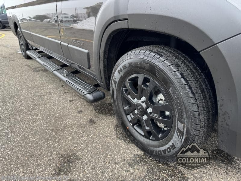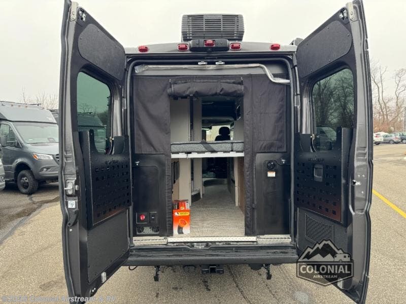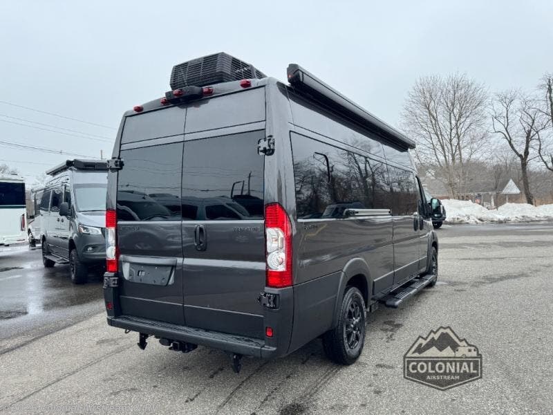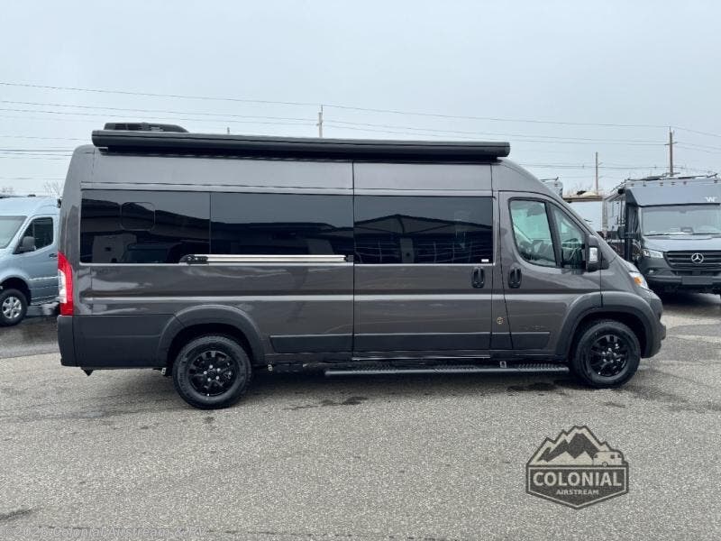 The Airstream Rangeline offers complete comfort and flexibility with great living spaces, flexible storage throughout, and all the amenities you need to enjoy travel. Its sleek design with painted grille, two interior color choices with Warm River Oak cabinets and drawers, and gray laminate countertops allows you to travel in style. The Ram ProMaster 3500 chassis offers front-wheel drive and 276 horsepower, with an efficient gas-powered heat and hot water system plus SumoSprings and SuperSprings for an overall better driving experience. Rear storage includes MOLLE panels on the rear doors to hang all your gear, and space under the bed for even more cargo. The optional pop-top roof has three screen windows and another bed, expanding sleeping capacity to four people.