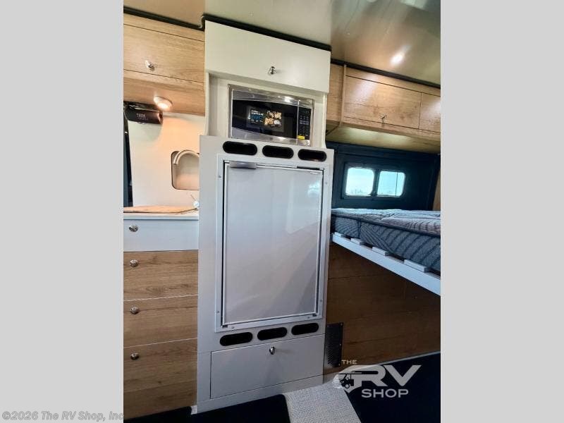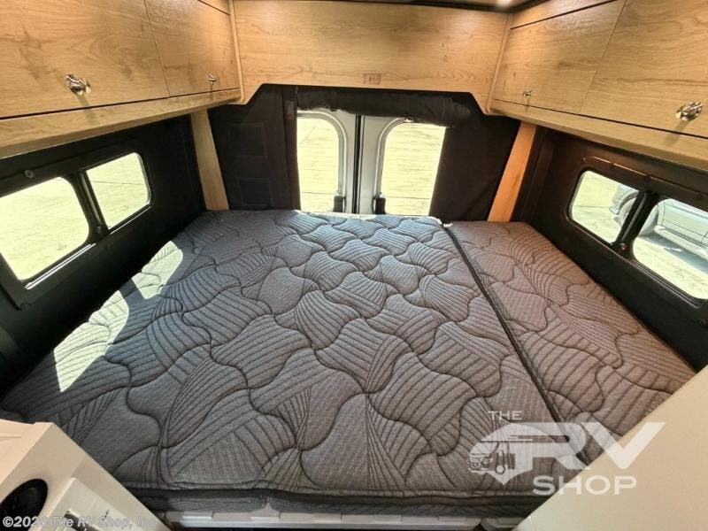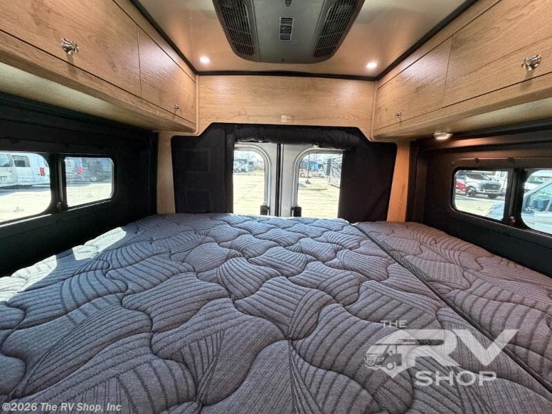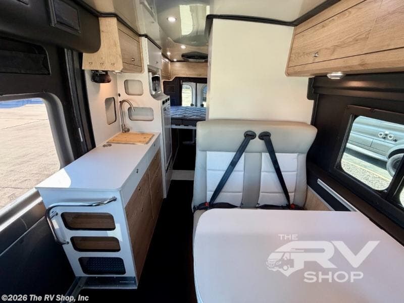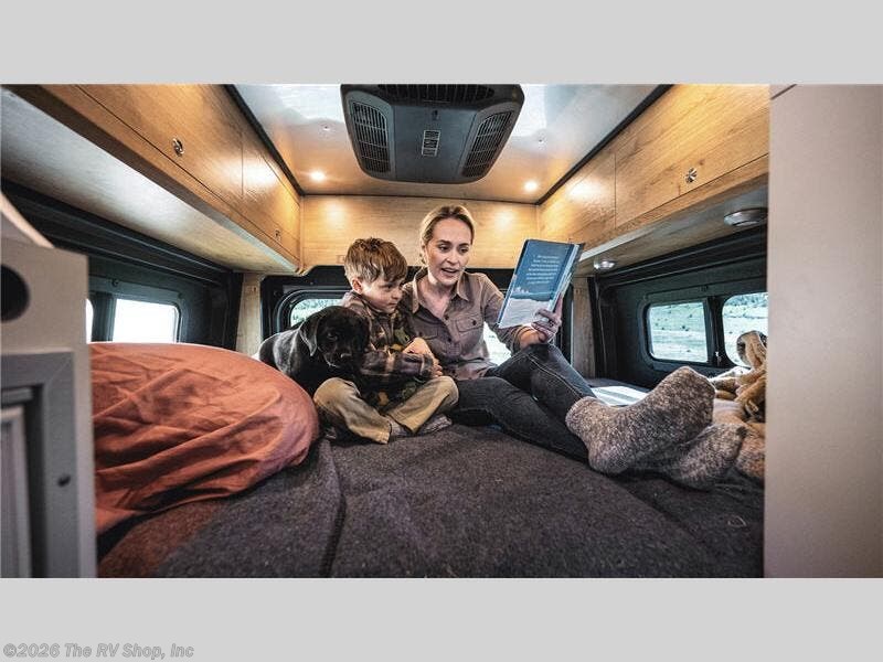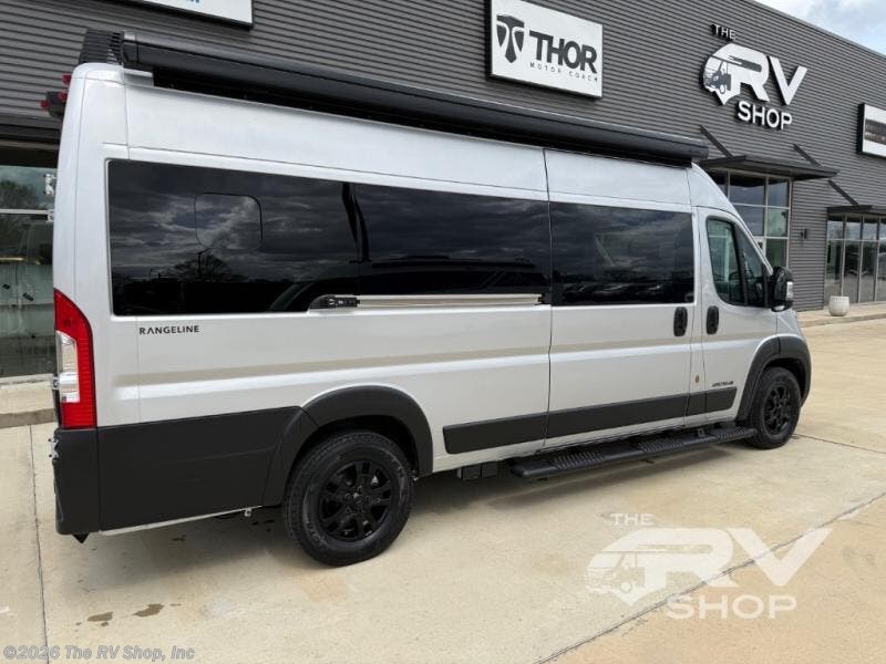 The Airstream Rangeline offers complete comfort and flexibility with great living spaces, flexible storage throughout, and all the amenities you need to enjoy travel. Its sleek design with painted grille, two interior color choices with Warm River Oak cabinets and drawers, and gray laminate countertops allows you to travel in style. The Ram ProMaster 3500 chassis offers front-wheel drive and 276 horsepower, with an efficient gas-powered heat and hot water system plus SumoSprings and SuperSprings for an overall better driving experience. Rear storage includes MOLLE panels on the rear doors to hang all your gear, and space under the bed for even more cargo. The optional pop-top roof has three screen windows and another bed, expanding sleeping capacity to four people.