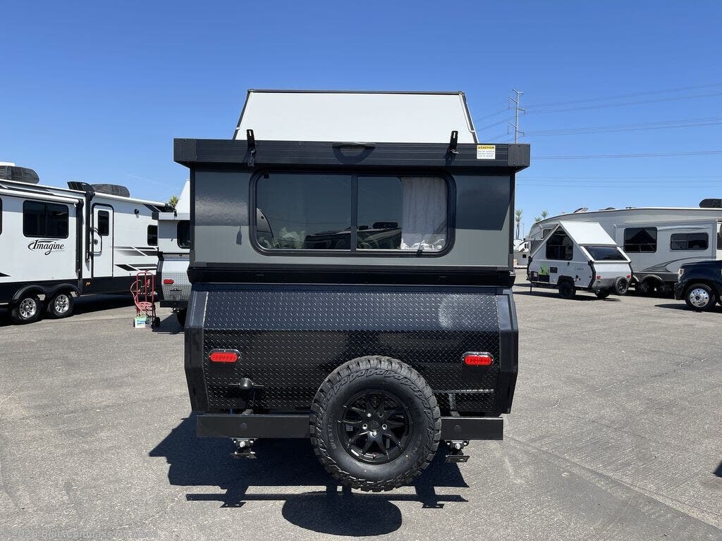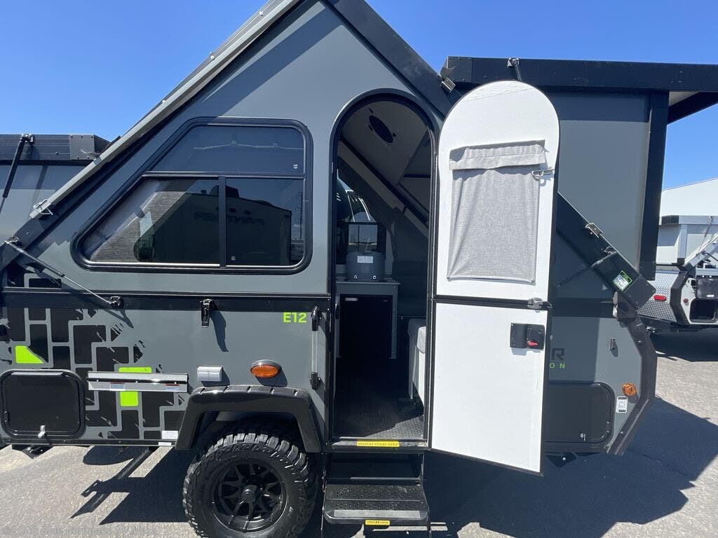 The Evolution A-frame camper by Aliner is coming to you with residential features and solid construction materials. You'll love the slate gray exterior, and the Azdel composite panels included help prolong the life of your camper. There are 15" off-road tires with graphics package, LED running lights, exterior baggage doors, plus many more exterior conveniences. The Evolution A-Frame camper comes with commercial grade, raised coin polyvinyl flooring, SIMONA BOATBOARD interior cabinets and furniture, and three indoor electrical outlets to name a few interior comforts.