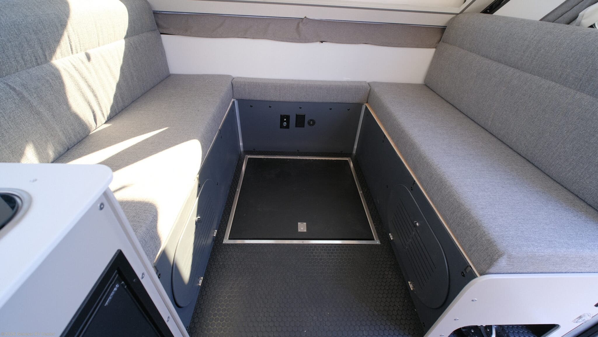 **Aliner Evolution A-Frame Evolution 15 highlights:** * Sofa Bed * Two Burner Cooktop * Hidden Shower * Cassette Toilet Don't wait another minute, head to the campground in this camper today! There is a two-burner cooktop to make lunch on and a 3.2 cu. ft. 12V refrigerator for your cold items. The sofa bed converts to a queen-size bed, and the dinette also converts to a queen-size bed. You'll find storage space for your items, and there is a 32" x 32" hidden shower under the dinette so you can clean up each day. This model also has a dry weight of 2,400 lbs. for easy towing! The Evolution A-frame camper by Aliner is coming to you with residential features and solid construction materials. You'll love the slate gray exterior, aluminum wheels, and the Azdel composite panels to help prolong the life of your camper. There are LED running lights, exterior baggage doors, and four stabilizer jacks to help keep your camper secure. You will also appreciate the keyless entry, the dual LP tanks with a cover, and the 200-watt solar panel on the front dormer for some off-grid power. The lift kit and 15" off-road tires add 3" to the height, allowing you to explore more roads, and you'll find many interior comforts to make you feel right at home!