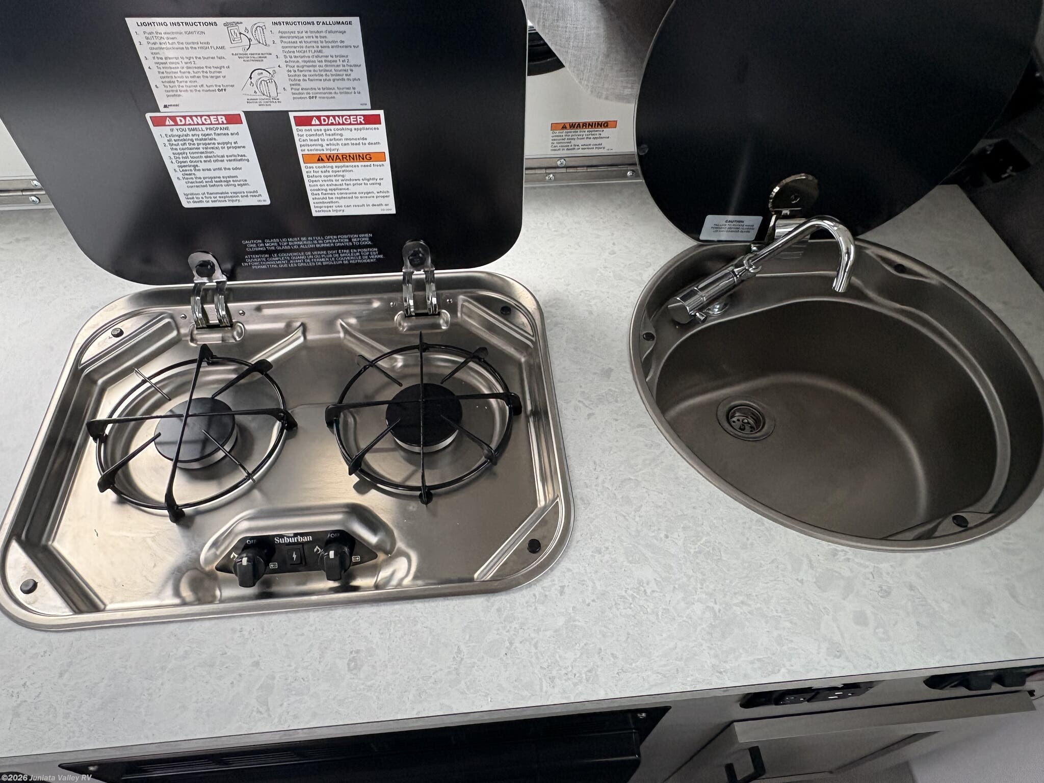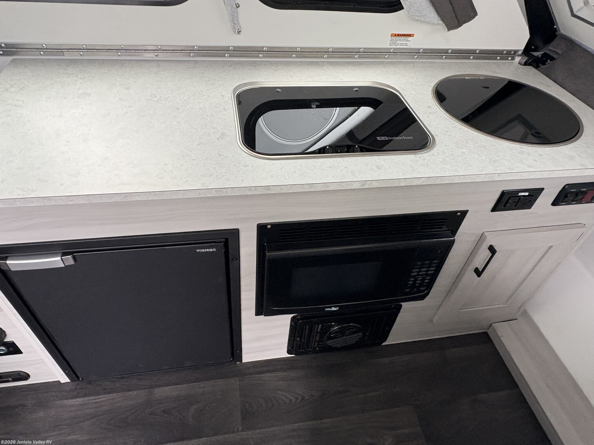 Enclosed Water Tank, Furnace, Microwave, Refrigerator, Refrigerator (12V), Stove, Stove Cover, Stove Top Burner, Water Heater -