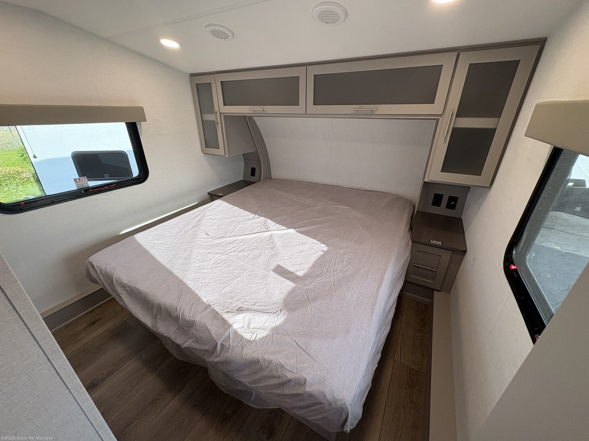 • Private Front Bedroom & Full Bath with a queen bed, dual nightstands, spacious side-aisle bathroom, washer/dryer prep, and residential-style finishes for extended stays