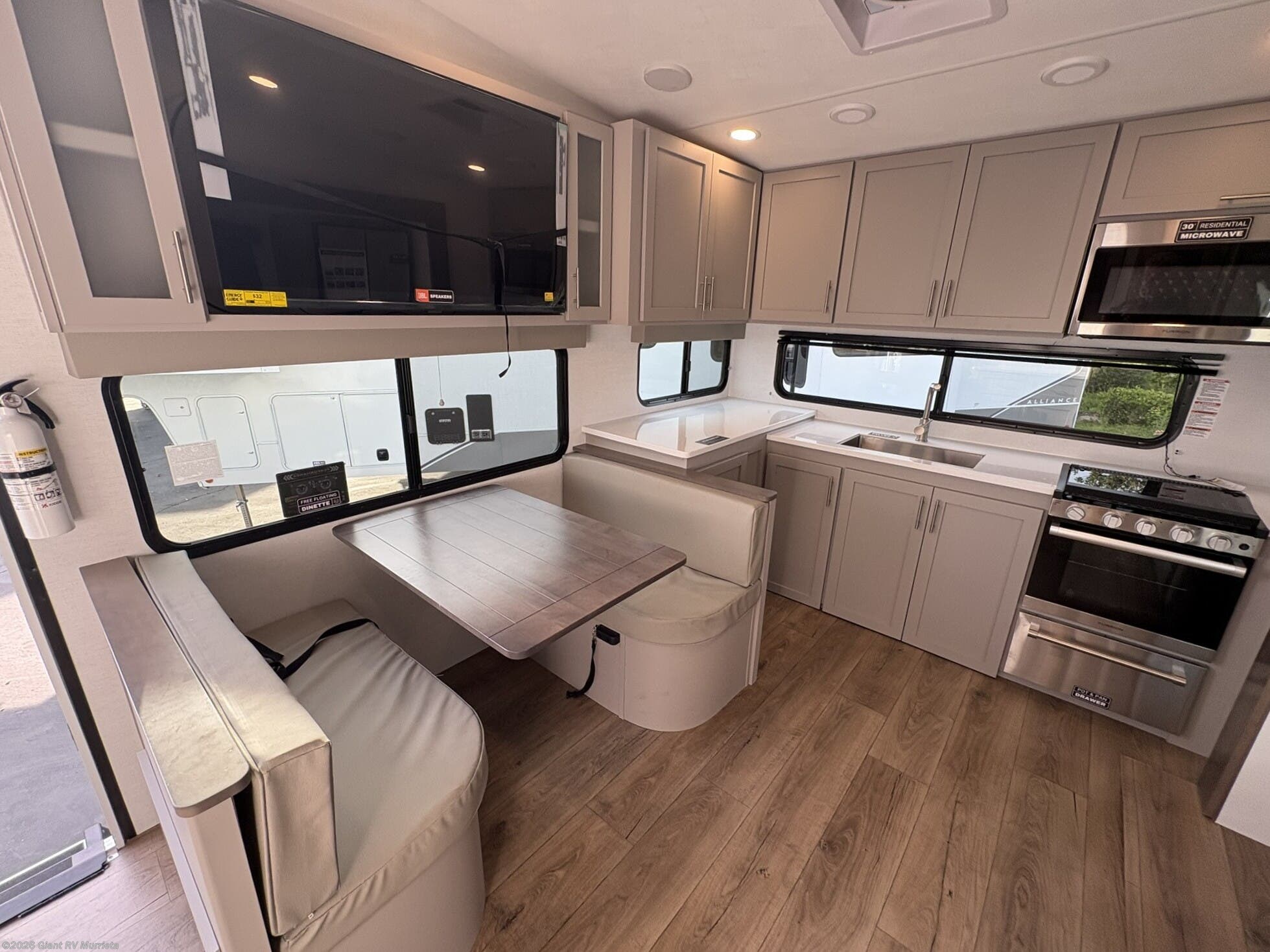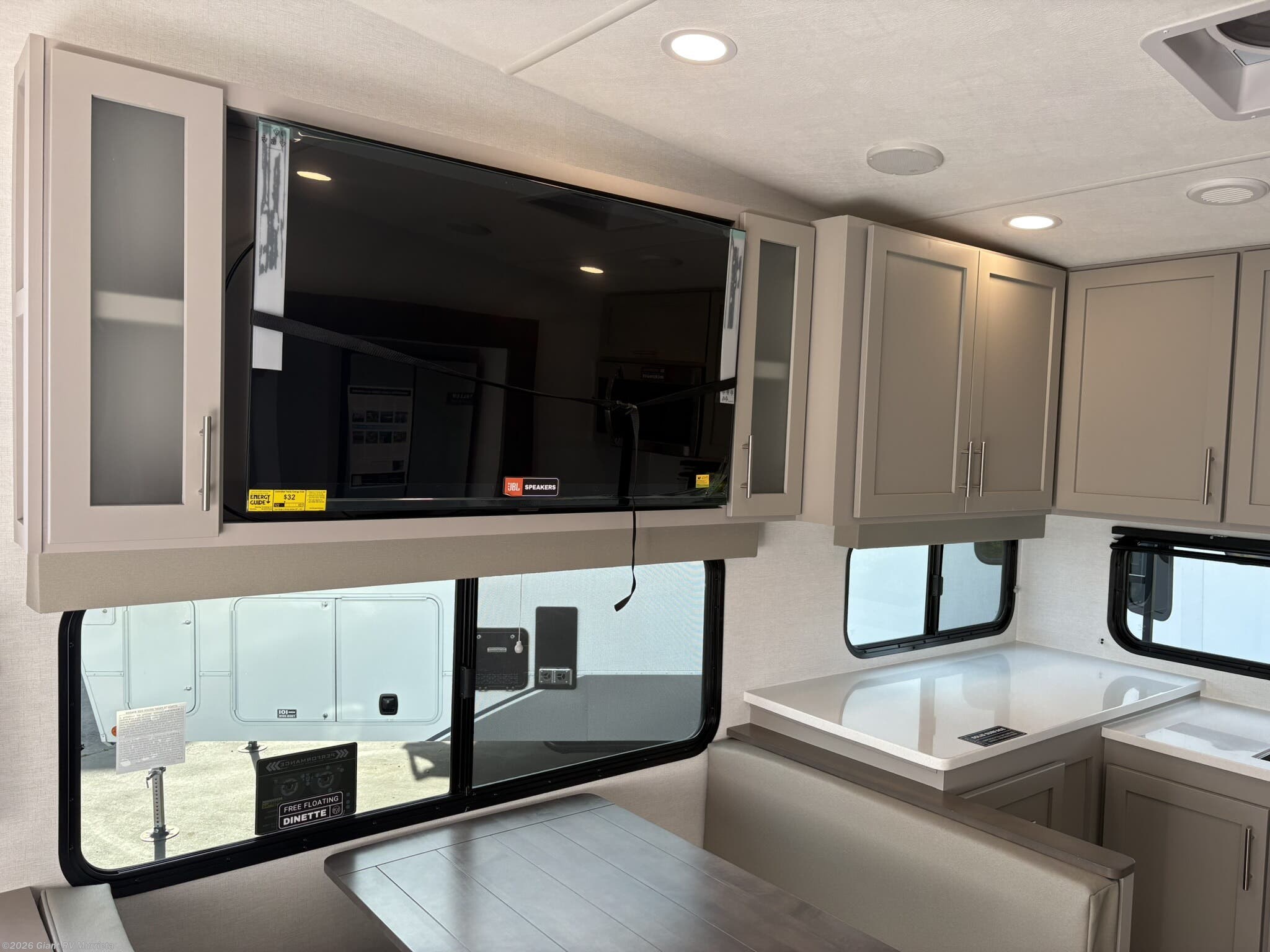 • Open Living Area with Theater Seating & 50” TV including reclining seating, optional dinette, and smart storage throughout for a comfortable and functional living space