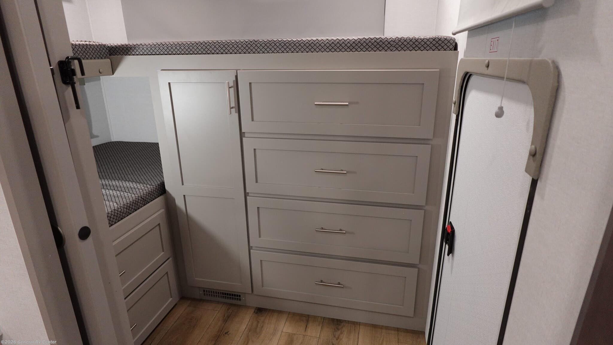 **Alliance RV Avenue All-Access fifth wheel 29BH highlights:** - Rear Bunkhouse - L-Shaped Dinette - Queen Bed - Full Bathroom Your kiddos will love this trailer’s rear bunk beds! These bunk beds are perfect for them (or kids at heart!), providing a cozy and comfortable sleeping space. The kitchen is equipped with a refrigerator, microwave, and overhead cabinets, making meal preparation and storage easy. The sink is conveniently located for food prep and cleanup. The L-dinette provide a comfortable spot for meals and socializing. The 68” theater seating is perfect for relaxing and enjoying your favorite shows or movies. The full bathroom provides a private space for personal care, and the front bedroom features a queen bed and nightstands. This serene space is perfect for recharging after a day of adventure! A benchmark chassis creates a space saver upper deck with each one of these Avenue All-Access fifth wheels by Alliance RV! The 101 in. wide-body construction gives you more room to walk around and the flush slide out floors throughout prevent any tripping. There are composite sidewalls inside and out, and PVC roof for extreme durability. You are sure to love no carpet throughout making each Avenue All-Access easy to clean and allergen free, not to mention pet friendly. You can maximize your space throughout with innovative storage solutions like the hidden storage behind the TV, inside the end tables, ottoman, and dinette chairs. These units also include the OTG Solar Package with a 200 watt solar panel, 15 amp MPPT charger, multiple outlets, and more to keep you powered up!