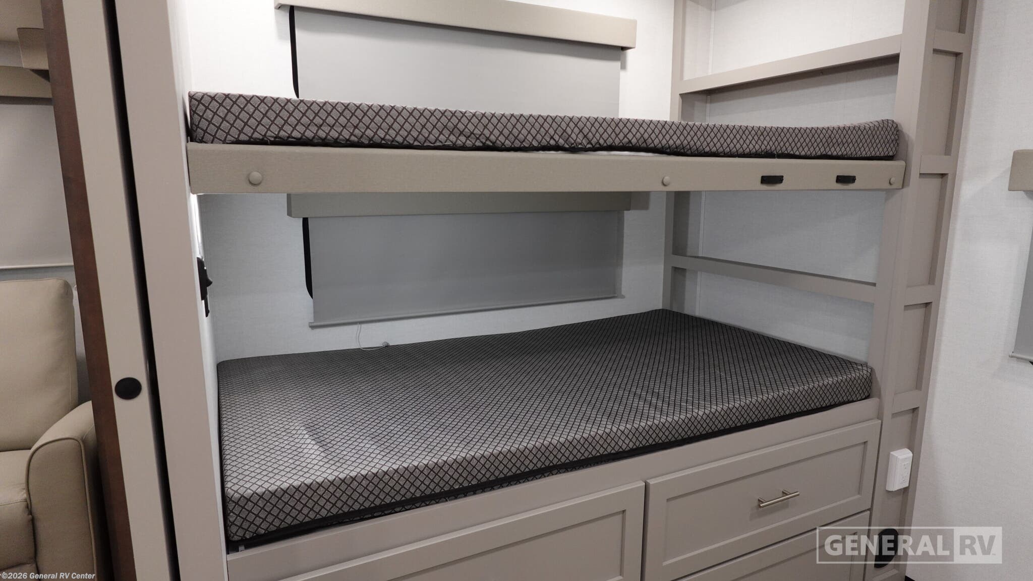 The 2026 Alliance RV Avenue All-Access 30BH is your gateway to adventure and comfort, offering a spacious and inviting design perfect for family getaways. This model comfortably sleeps up to eight, with a cozy queen bed and three bunks that promise restful nights for everyone. The dual slide-outs create an expansive living area, allowing for a seamless flow between the kitchen, dining, and entertainment spaces. The living room features a 50-inch HDTV, ideal for relaxing movie nights after a day of exploration. With a 10 cu. ft. 12V refrigerator and a three-burner cooktop, the kitchen is fully equipped to handle your culinary needs on the road. Designed with convenience in mind, the Avenue 30BH includes a standard 30" x 36" shower, ensuring you feel refreshed and ready for the day. The RV is also prepped for a washer and dryer, adding a touch of home to your travels. Outside, you'll find two awnings providing ample shade, perfect for enjoying the great outdoors. The ample storage solutions ensure you have room for all your gear, making this RV a perfect blend of functionality and style. For more details and to experience this RV firsthand, visit your nearest General RV dealership.