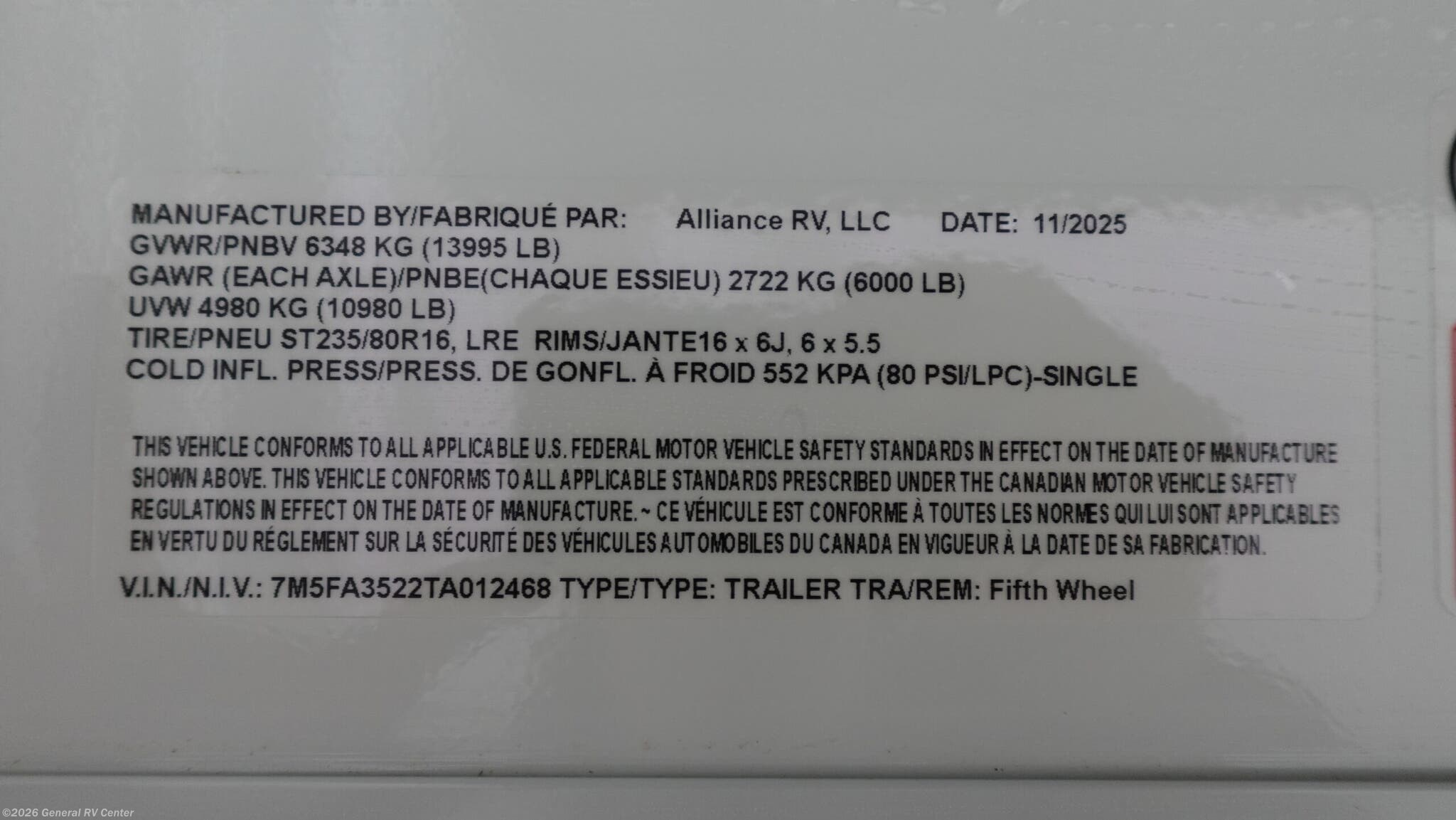 Request More Info on this 2026 Alliance RV Avenue 32RLS Offered for sale by General RV Center