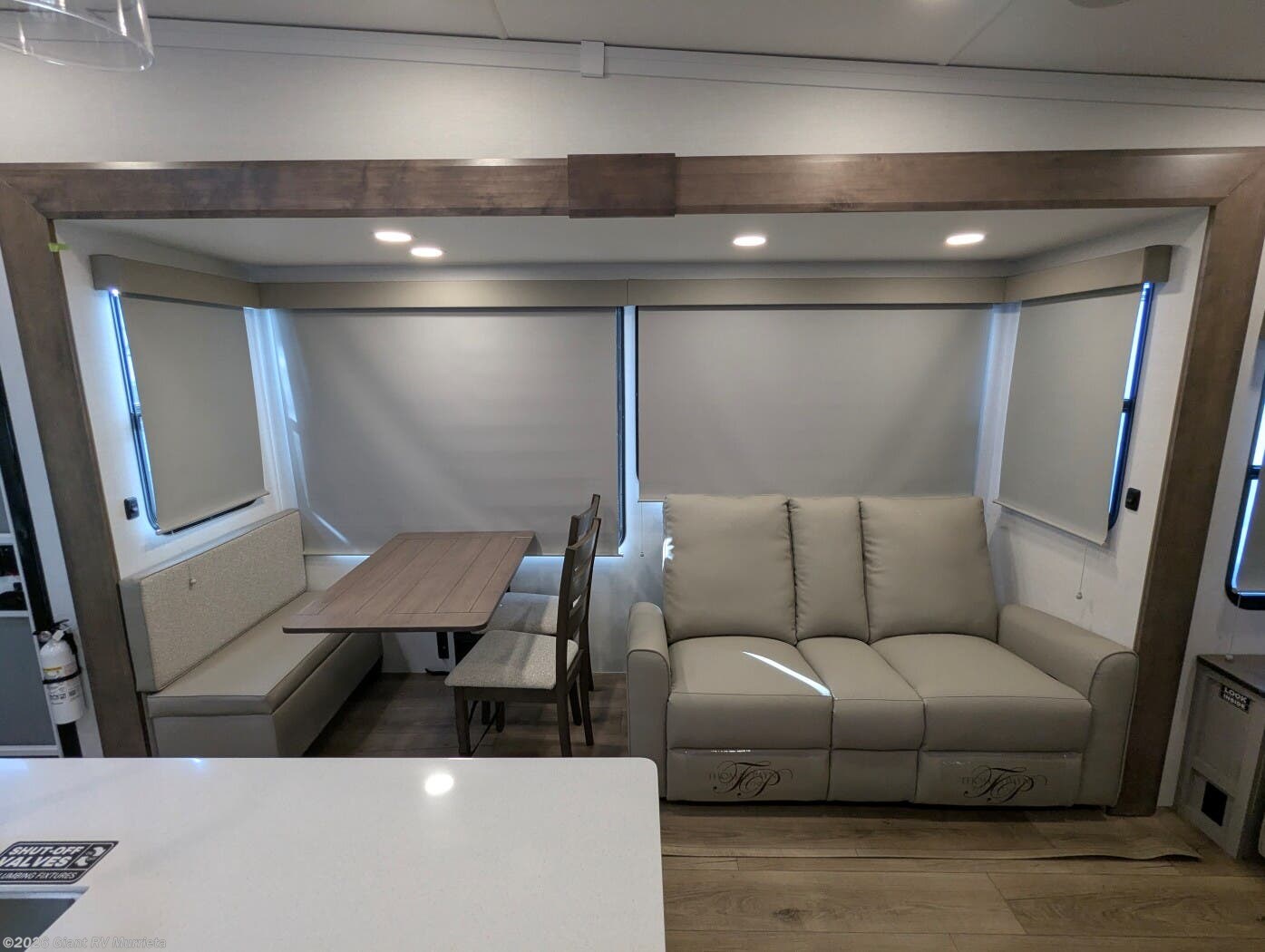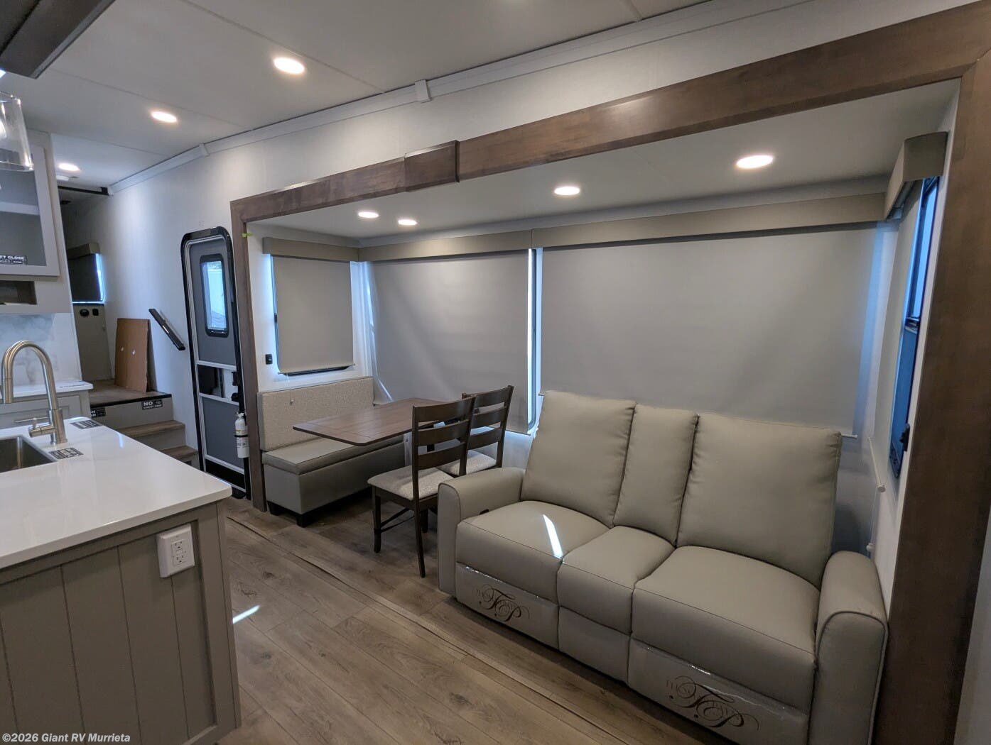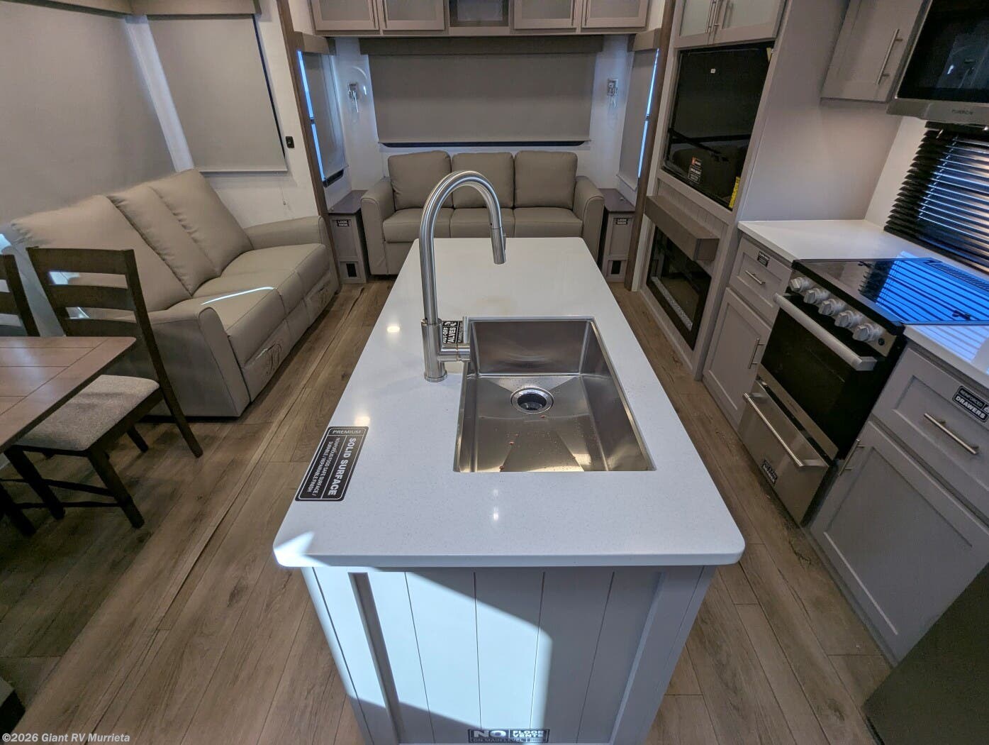 - Rear Living Retreat: Sleeps up to 4 with theater seating, floating dinette table with two chairs and movable ottoman with hidden storage, plus front queen bed for open, inviting space.