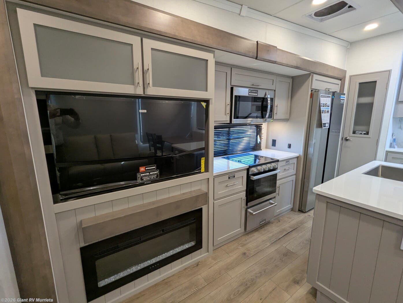 - Kitchen Island Excellence: Includes ample counter space in the fully equipped kitchen, plus atrium windows for spectacular views and a spacious living area enhanced by slideouts.