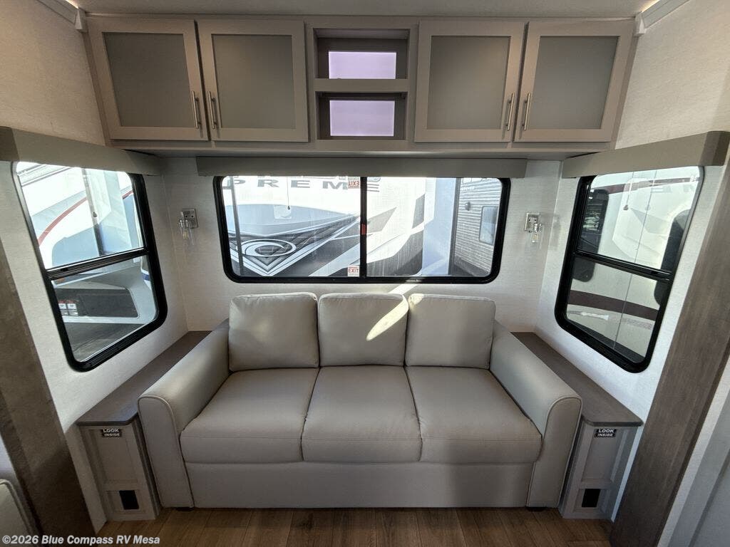 With any Avenue fifth wheel or travel trailer by Alliance RV, you will enjoy more interior space provided by the 8' 5" wide-body construction, and a long list of luxury features. Each is built with Azdel composite sidewalls both inside and out, along with a PVC roof for added strength. There are innovative storage solutions that include hidden storage behind the TV, within end tables and ottomans, and more. Since these units feature no carpet throughout, cleaning will be easier than ever, and there are flush floor slides throughout for seamless living spaces. The Avenue also comes with the OTG Solar Package with a 400 watt solar panel, inverter prep, multiple outlets, and more to keep you charged up!