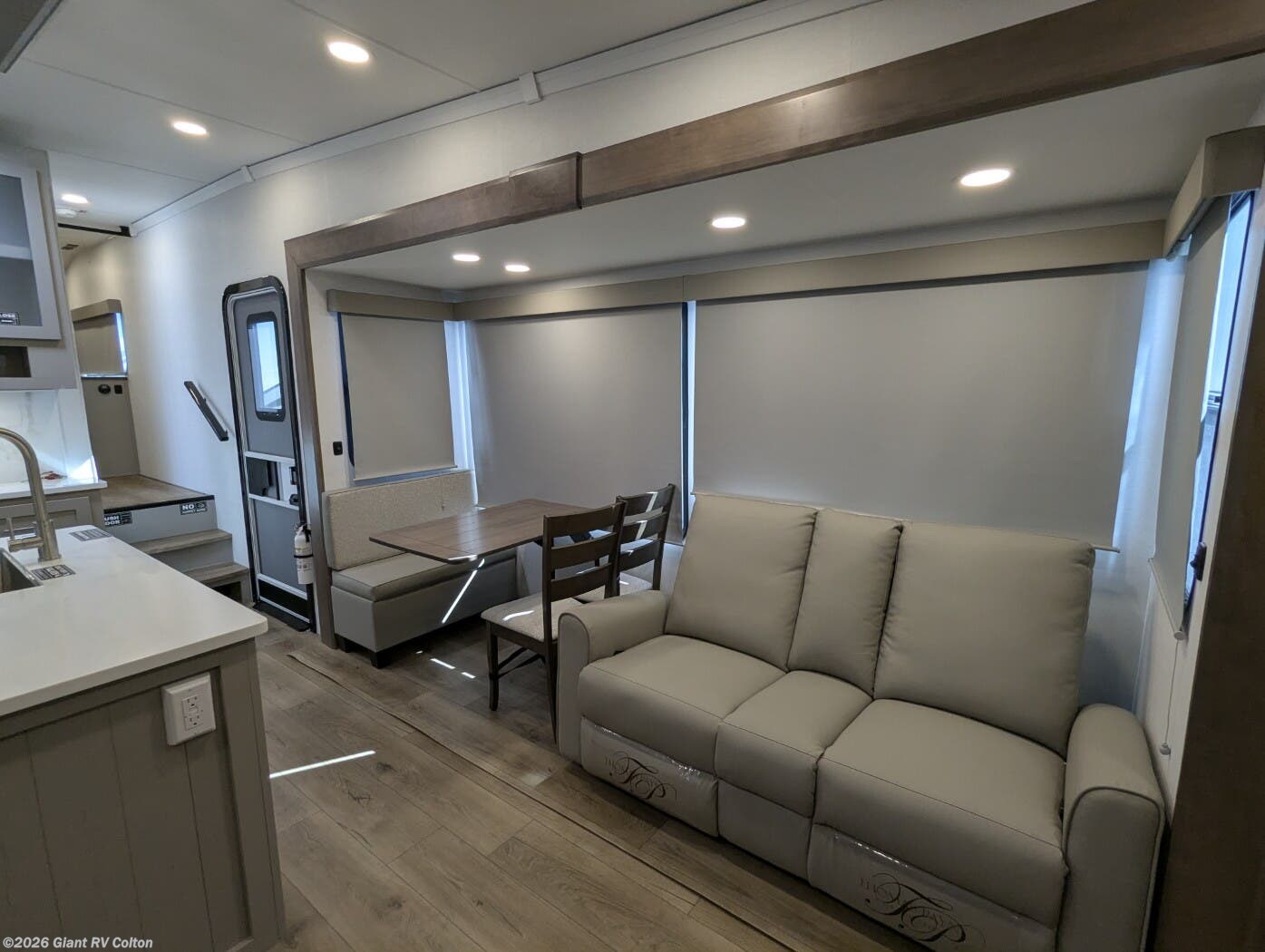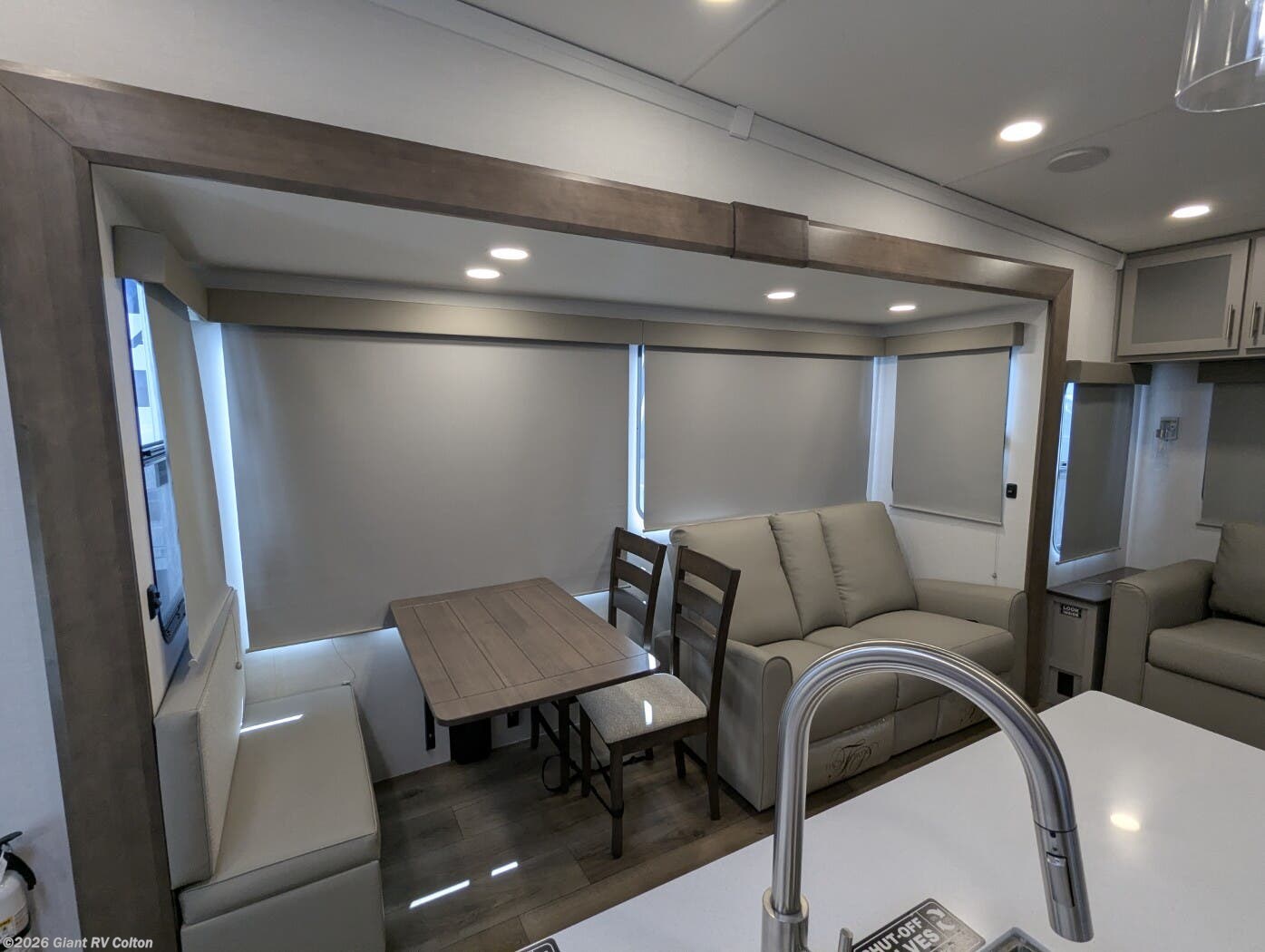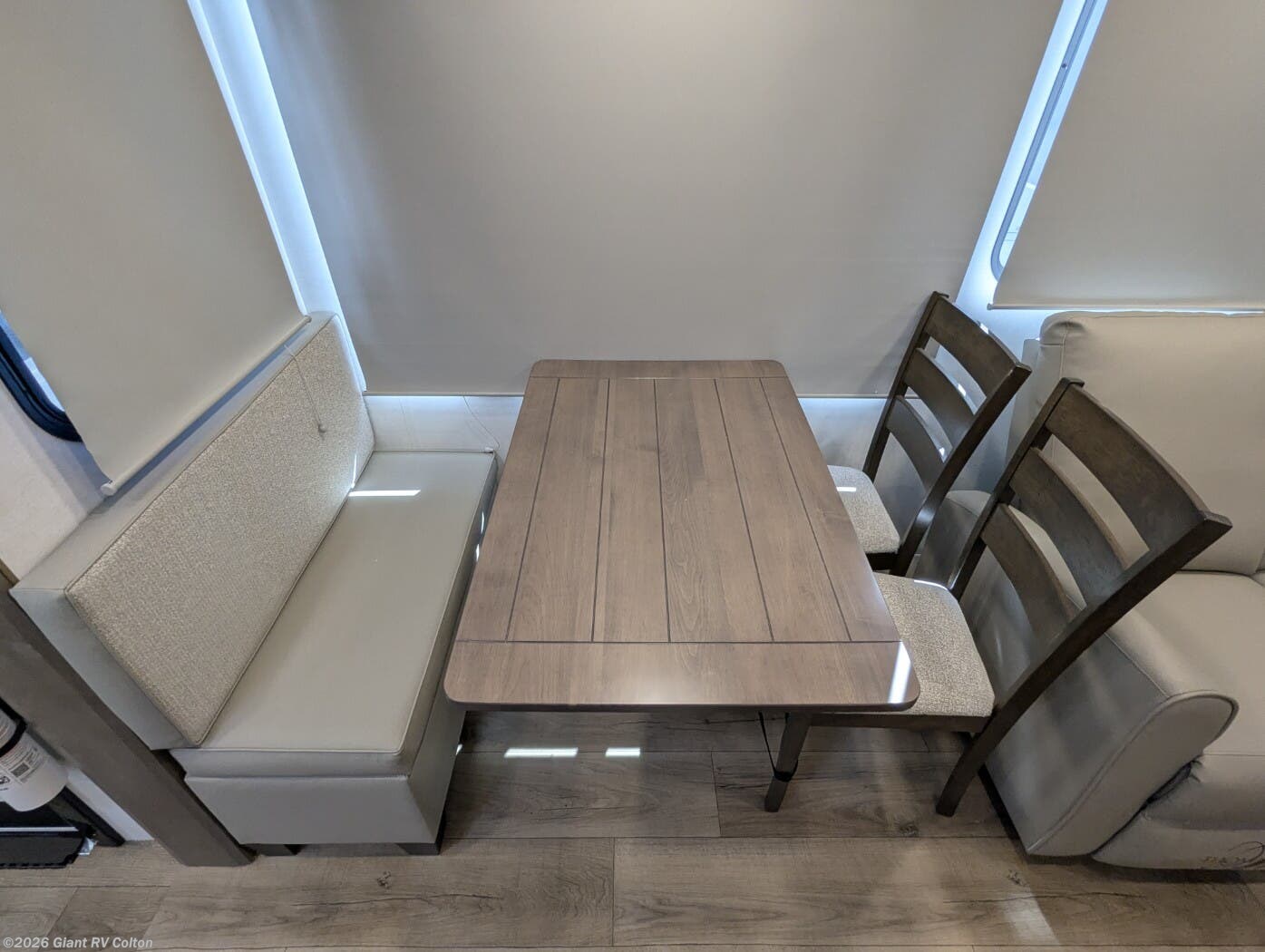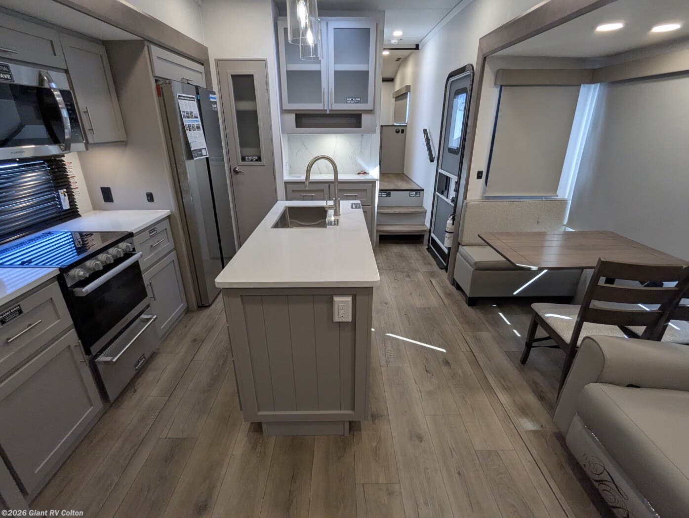 - Rear Living Retreat: Sleeps up to 4 with theater seating, floating dinette table with two chairs and movable ottoman with hidden storage, plus front queen bed for open, inviting space.