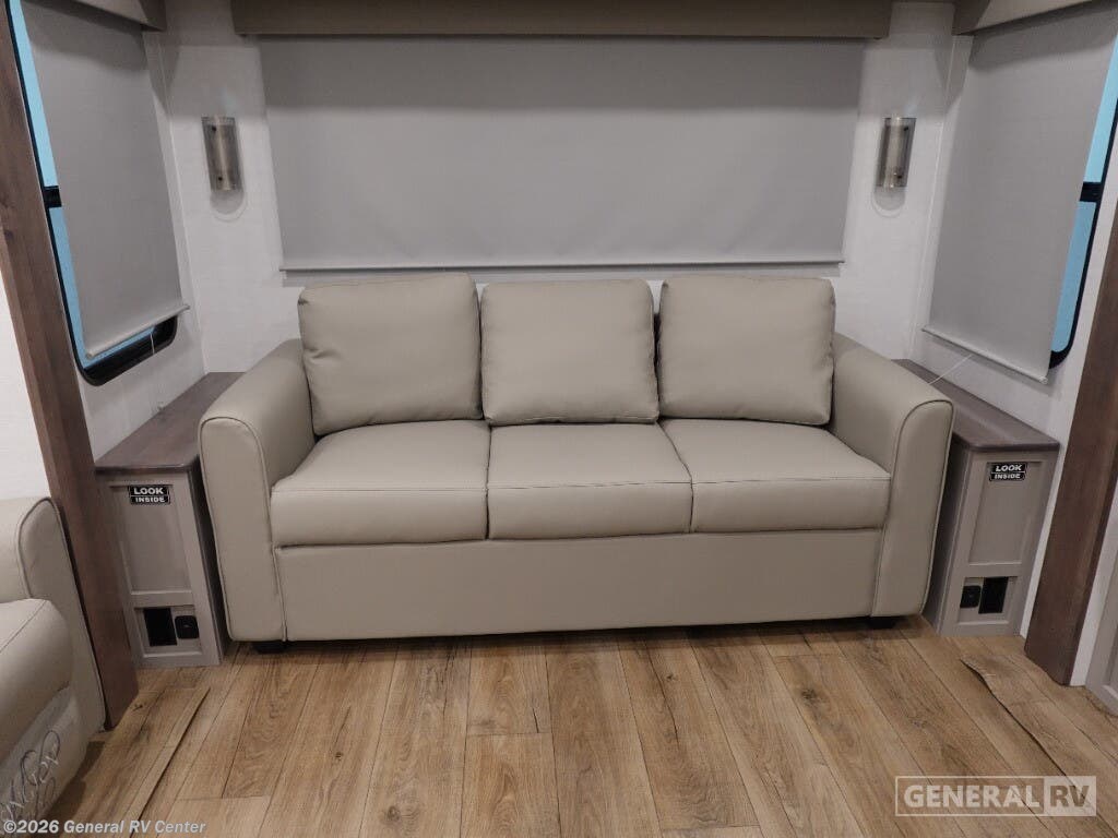 Experience luxury and comfort in the 2025 Alliance RV Avenue 32RLS. This fifth wheel is designed for those who crave adventure without sacrificing the comforts of home. With its spacious rear living area, you can relax on the dual recliner theater seats or entertain guests on the sleeper sofa, all while enjoying the ambiance of a 50" class HDTV. The center kitchen is a chef's delight, featuring a full-size electric refrigerator and a three-burner cooktop, perfect for preparing gourmet meals on the road. The floating dinette table adds versatility, allowing you to adjust your dining space as needed. Retreat to the front bedroom, where a king bed option awaits, ensuring restful nights under the stars. The washer and dryer prep adds convenience for extended travels. With ample storage throughout, including hidden storage and a pantry, organizing your essentials is a breeze. Enjoy the great outdoors under the powered retractable awning, ideal for al fresco dining or simply soaking in nature. With its impressive water capacities and automatic heater, the Avenue 32RLS is ready for any adventure. Visit your nearest General RV Dealership to explore this remarkable RV in person!