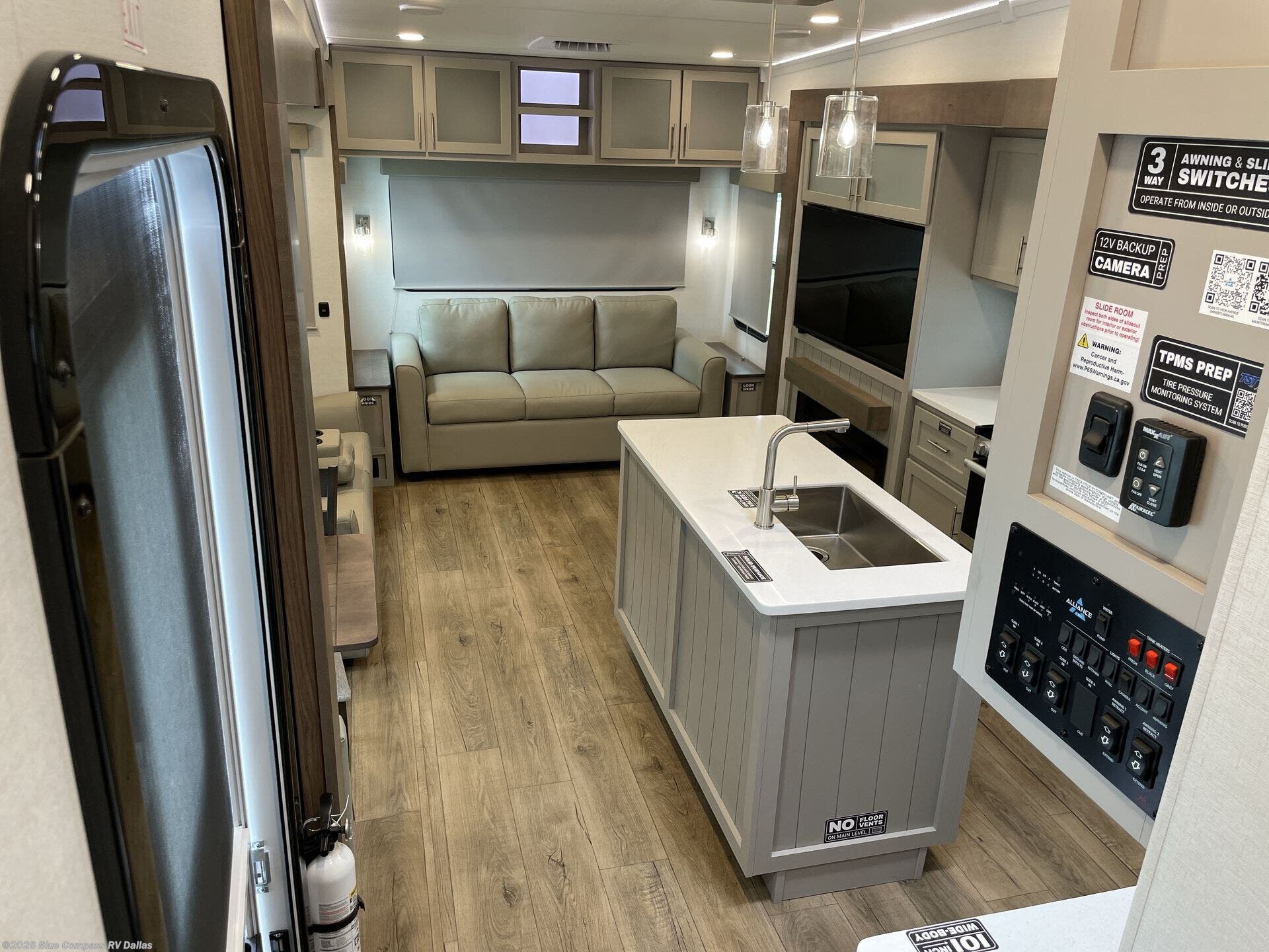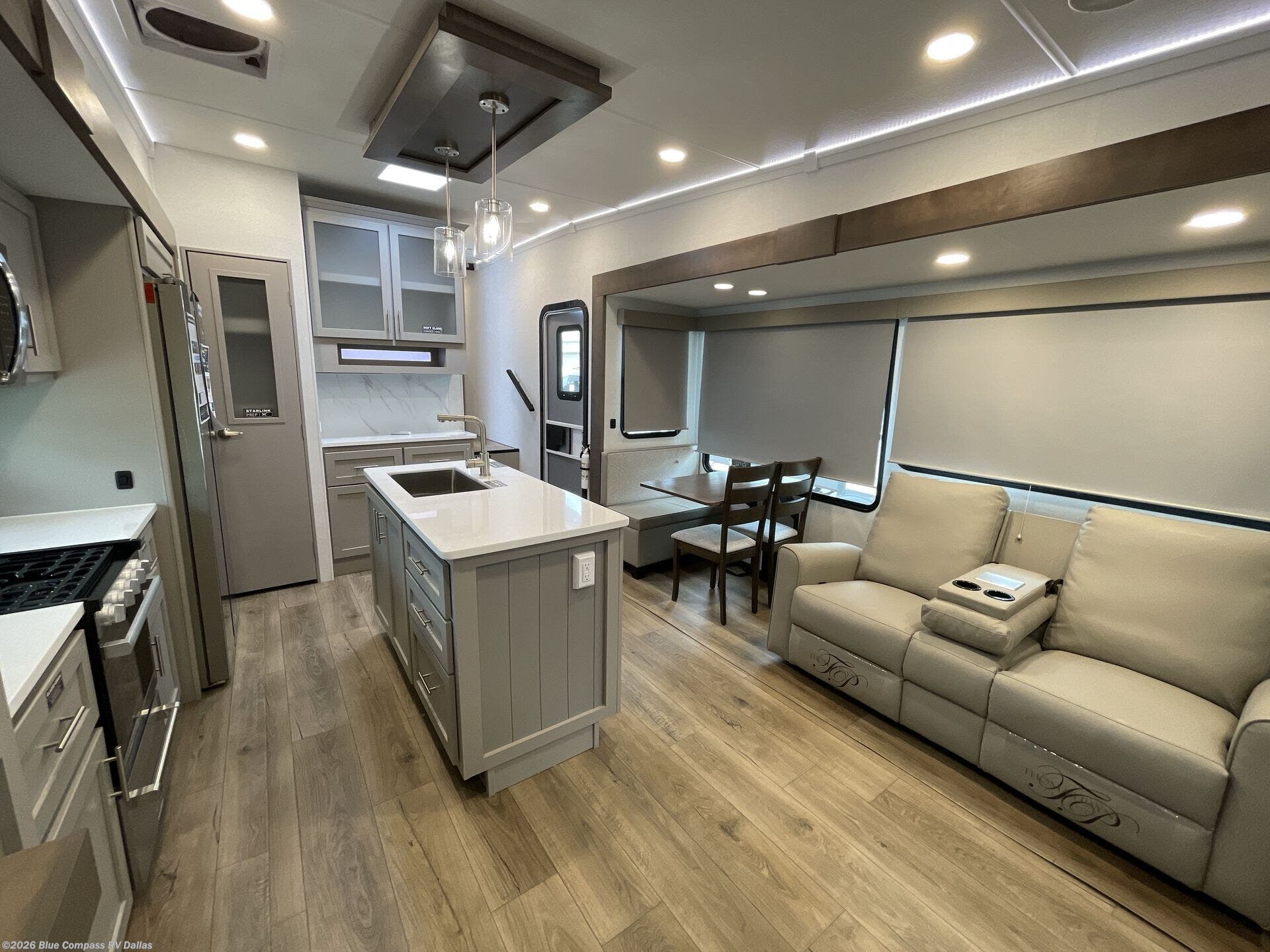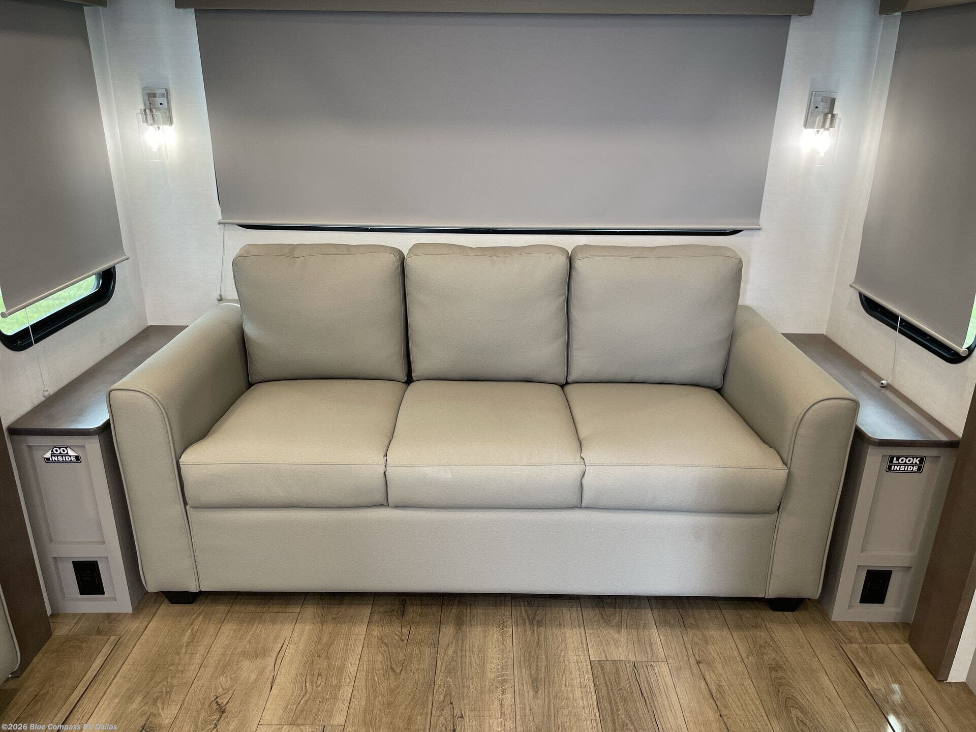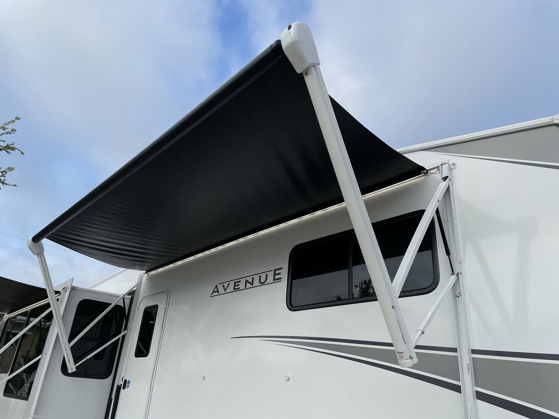With any Avenue fifth wheel or travel trailer by Alliance RV, you will enjoy more interior space provided by the 8' 5" wide-body construction, and a long list of luxury features. Each is built with Azdel composite sidewalls both inside and out, along with a PVC roof for added strength. There are innovative storage solutions that include hidden storage behind the TV, within end tables and ottomans, and more. Since these units feature no carpet throughout, cleaning will be easier than ever, and there are flush floor slides throughout for seamless living spaces. The Avenue also comes with the OTG Solar Package with a 400 watt solar panel, inverter prep, multiple outlets, and more to keep you charged up!