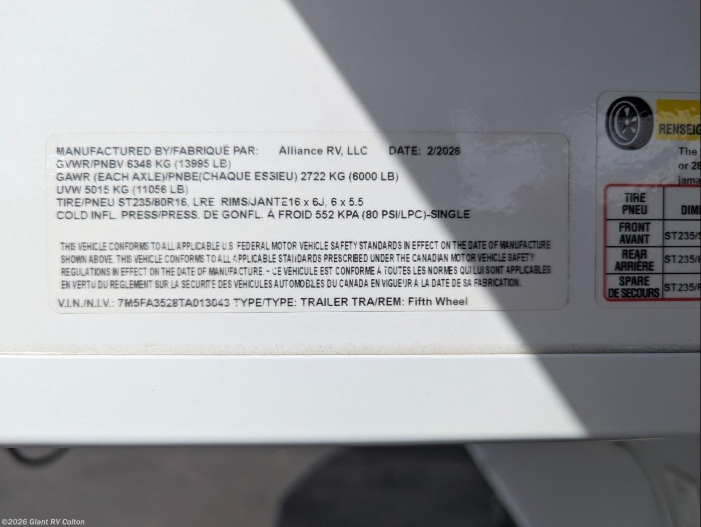 Request More Info on this 2026 Alliance RV Avenue 32RLS Offered for sale by Giant RV